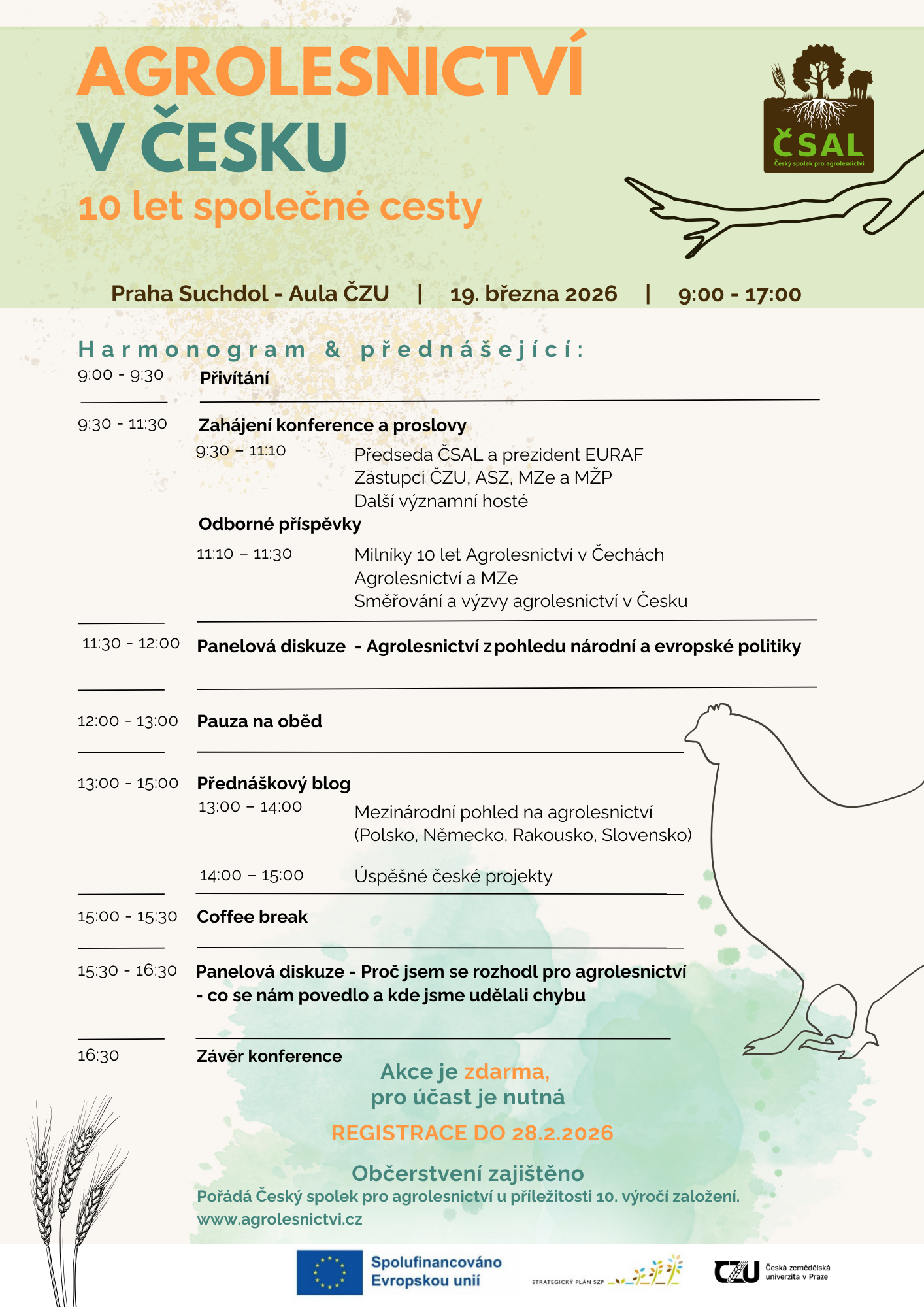 Vzdělávací a informační akce zaměřená na agrolesnictví jako inovativní a udržitelný systém hospodaření, který přispívá k adaptaci zemědělství na změnu klimatu, zlepšení kvality půdy, hospodaření s vodou a ochraně přírodních zdrojů. Akce je zaměřena na přenos aktuálních odborných poznatků, sdílení příkladů dobré praxe z České republiky i zahraničí a posílení spolupráce mezi zemědělci, poradci, výzkumnými institucemi a veřejnou správou.