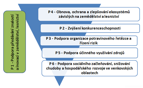 V průběhu realizace PRV 2014–2020 budou naplňovány následující priority EU (graficky řazeno dle významu pro PRV):