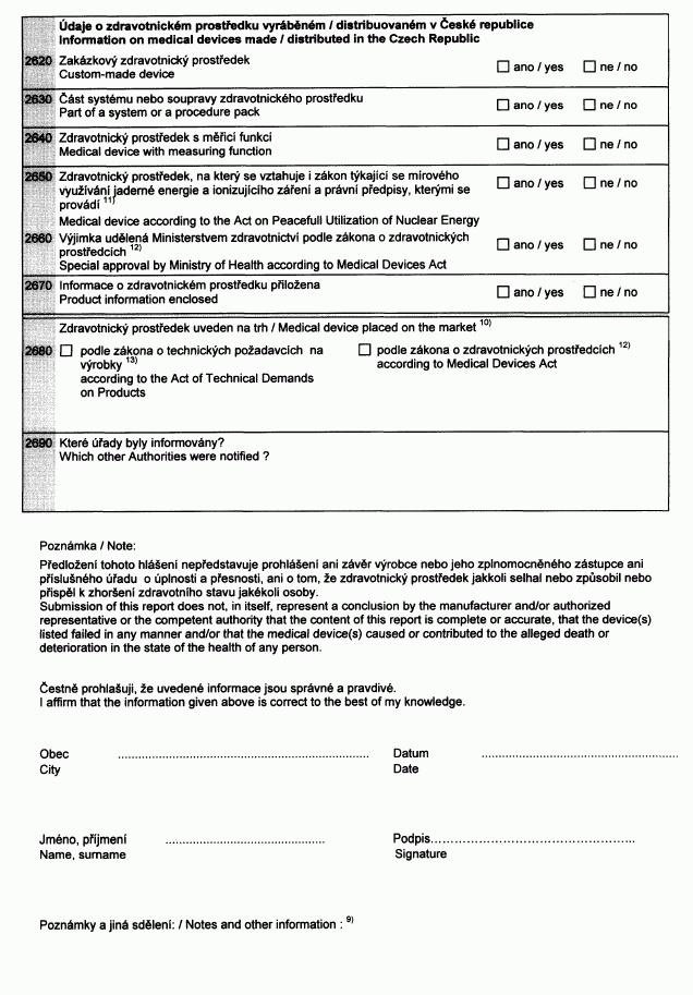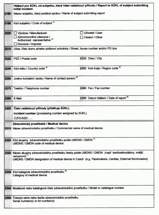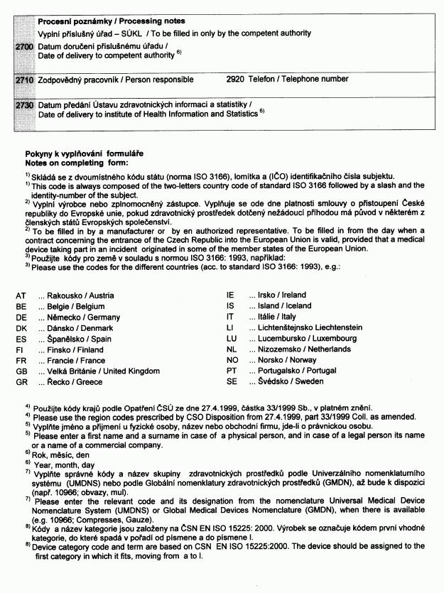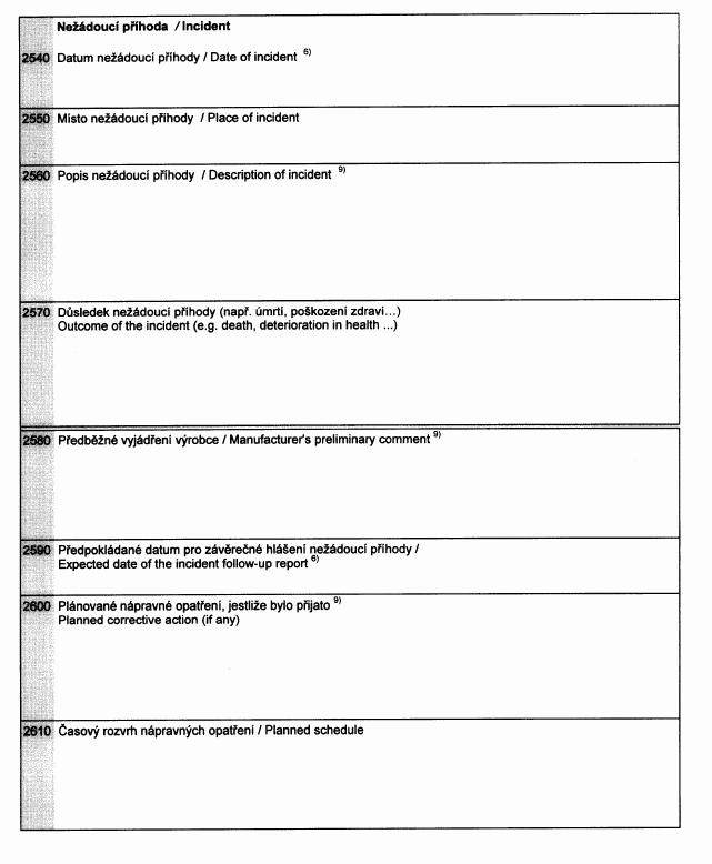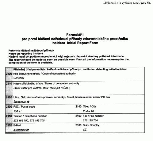 Vyhláška č. 501/2000 Sb., kterou se stanoví formy, způsoby ohlašování nežádoucích příhod zdravotnických prostředků, jejich evidování, šetření a vyhodnocování, dokumentace a její uchovávání a následné sledování s cílem předcházení vzniku nežádoucích příhod, zejména jejich opakování (vyhláška o nežádoucích příhodách zdravotnických prostředků)