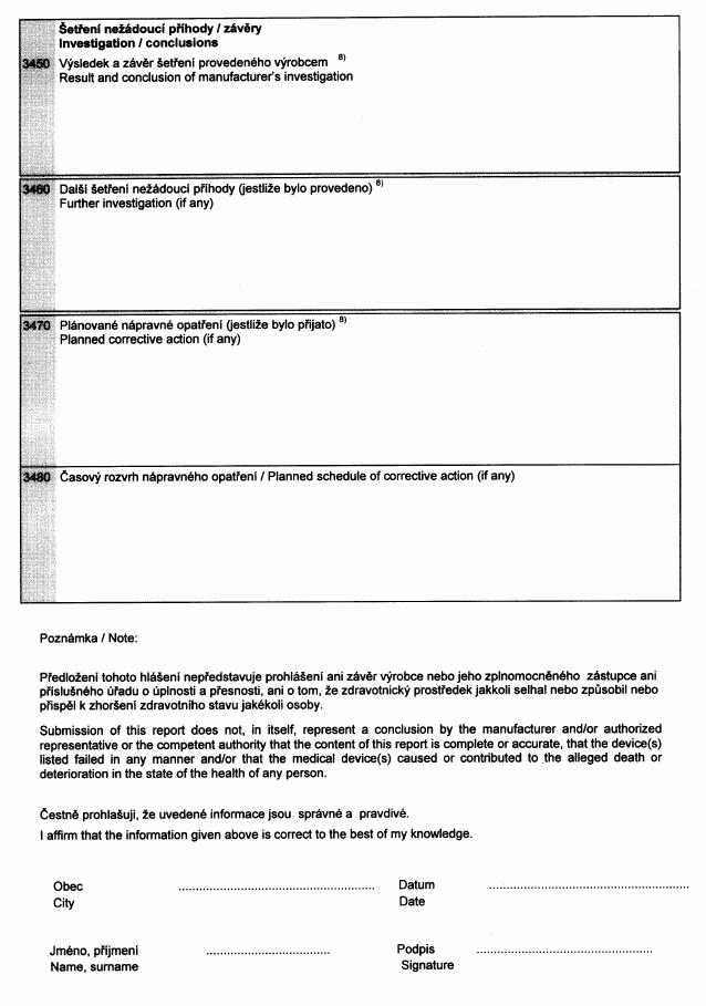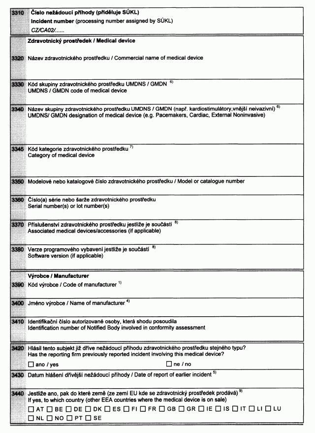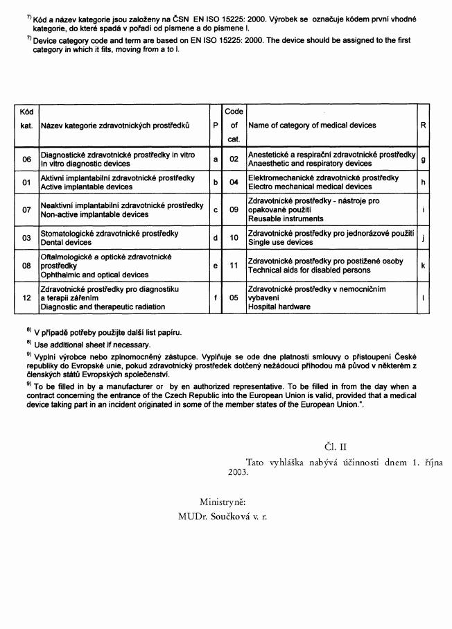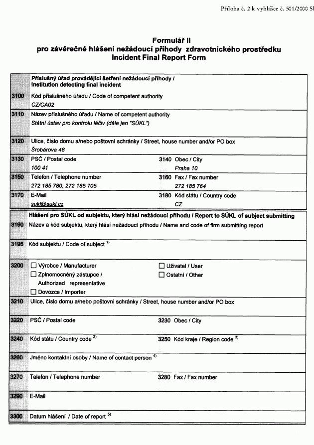 Vyhláška č. 501/2000 Sb., kterou se stanoví formy, způsoby ohlašování nežádoucích příhod zdravotnických prostředků, jejich evidování, šetření a vyhodnocování, dokumentace a její uchovávání a následné sledování s cílem předcházení vzniku nežádoucích příhod, zejména jejich opakování (vyhláška o nežádoucích příhodách zdravotnických prostředků)