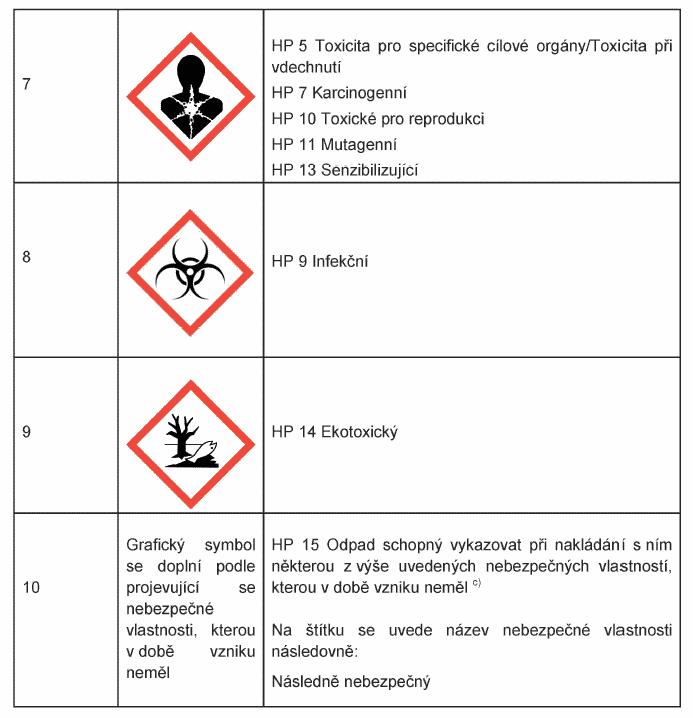 vlastnostech odpadů20), přiřazuje se mu grafický symbol pod pořadovým číslem 5 a