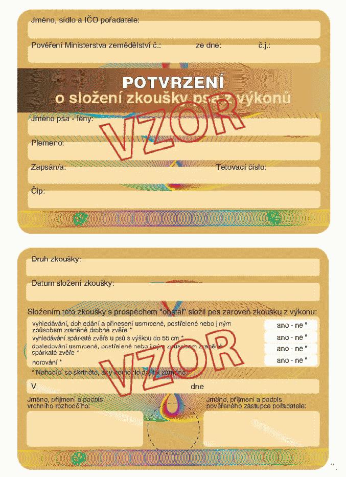 Vzor potvrzení o složení zkoušky psa z výkonu