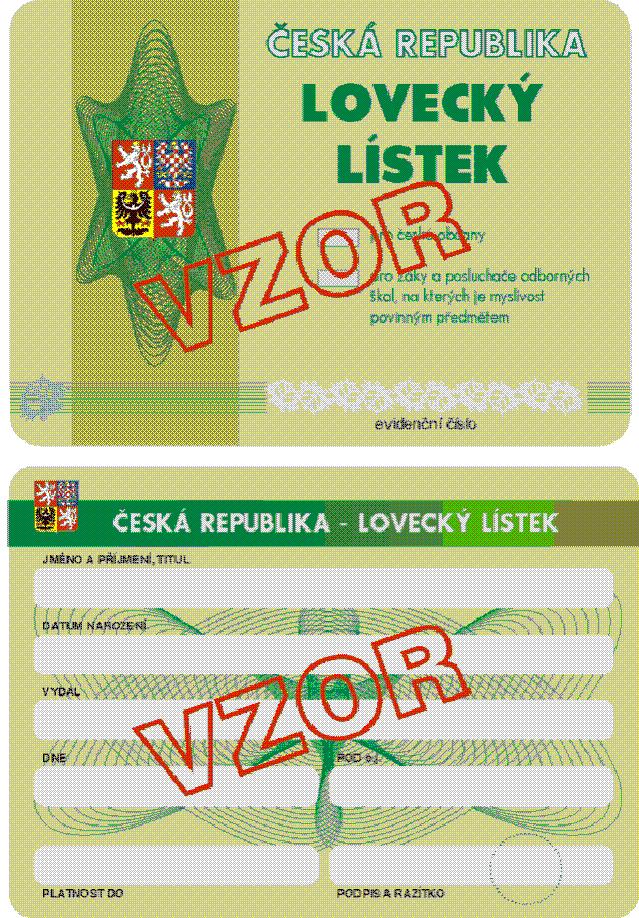 Vzor loveckého lístku pro české občany