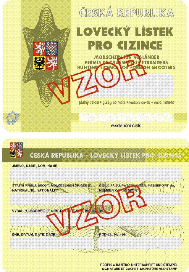 Vzor loveckého lístku pro cizince