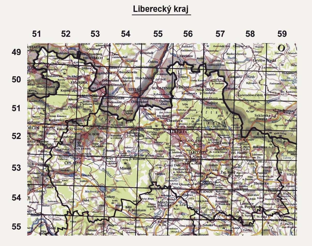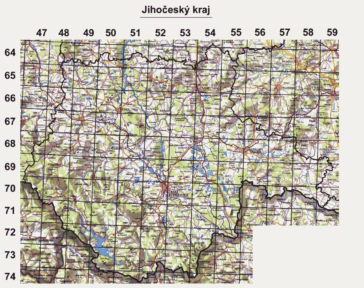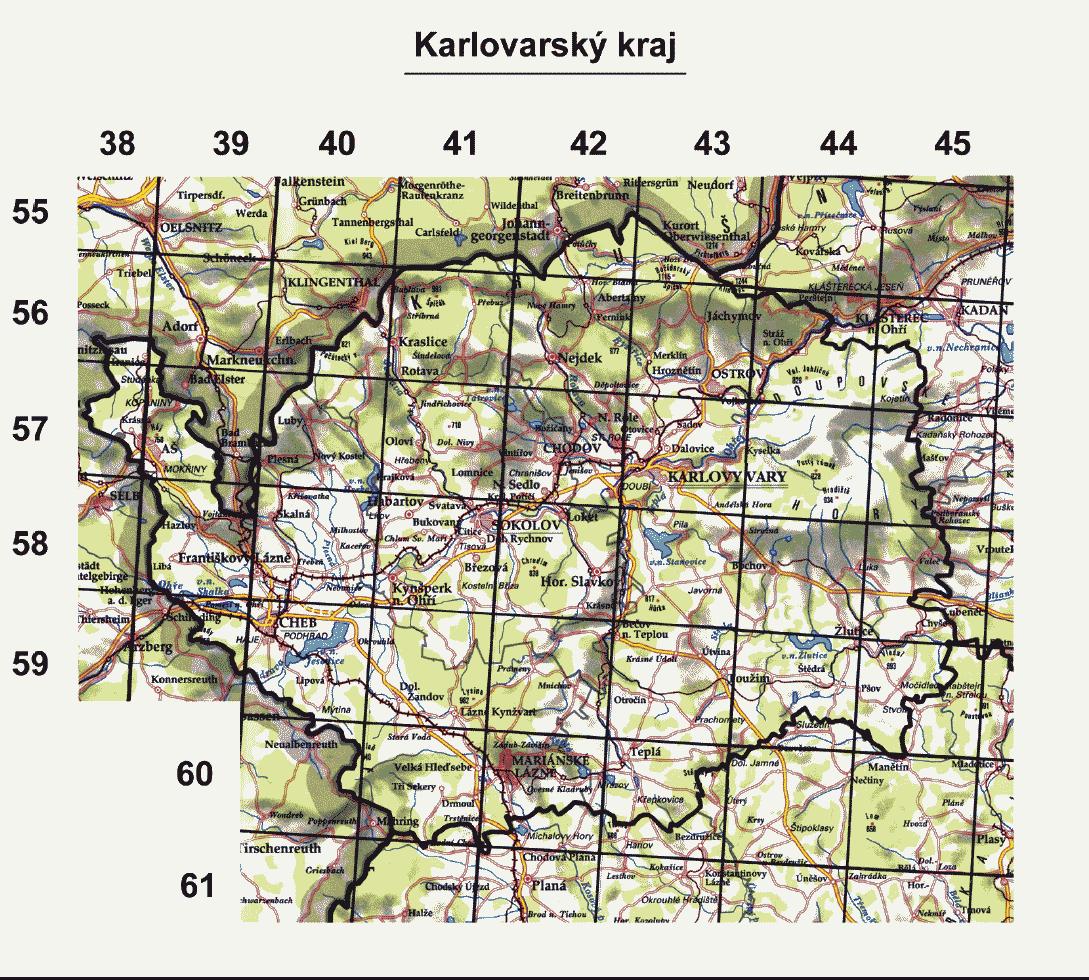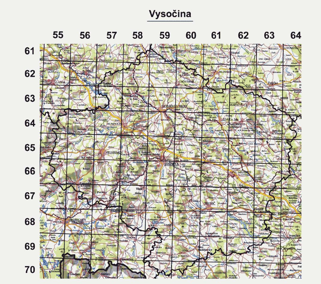 vyznačené souřadnicemi o velikosti 10 st. východní délky a 6 st. severní šířky. Každý