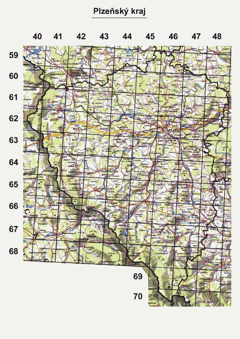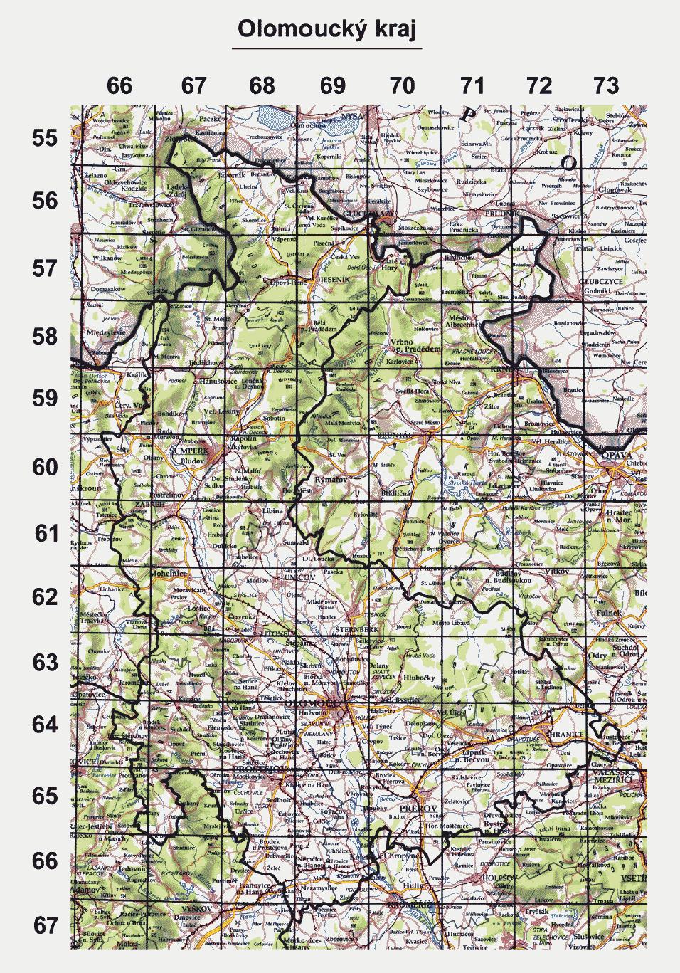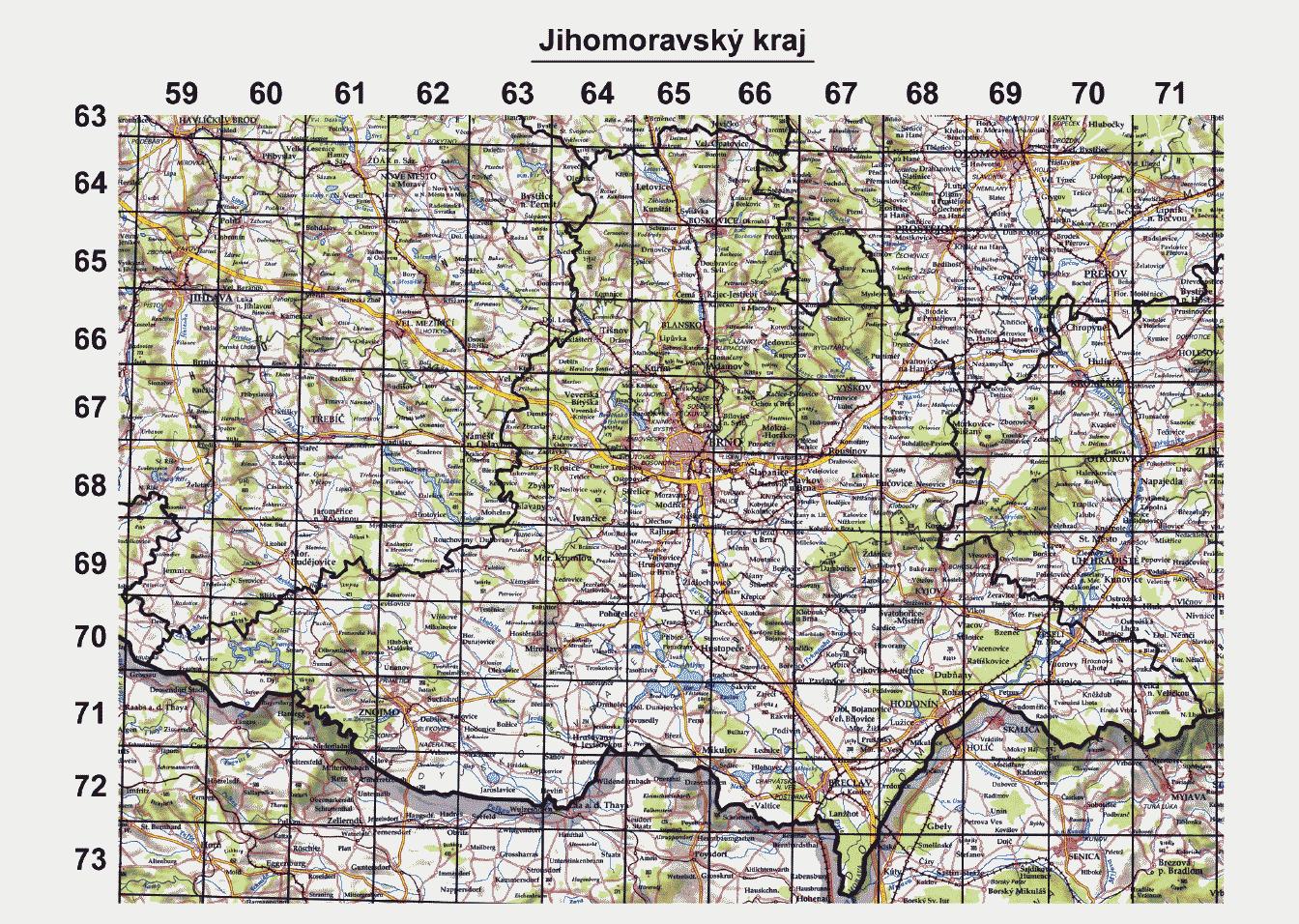 vyznačené souřadnicemi o velikosti 10 st. východní délky a 6 st. severní šířky. Každý