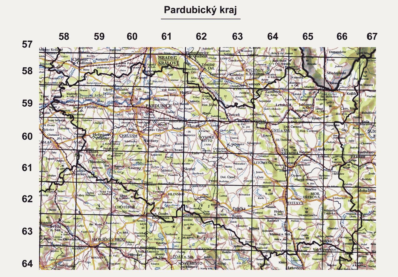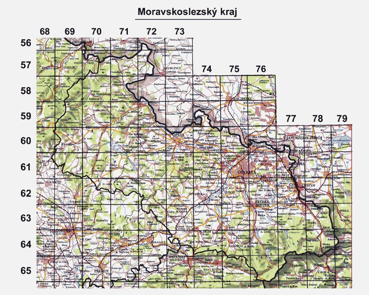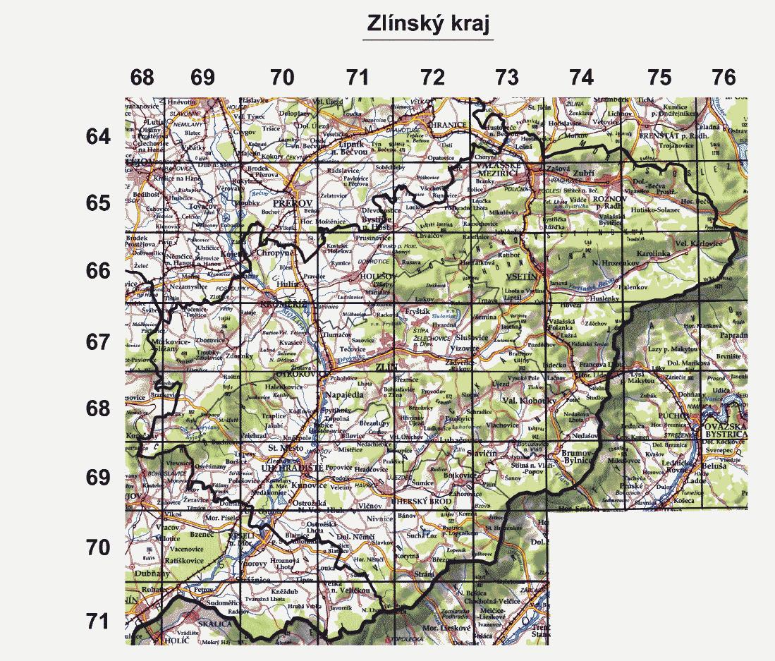 z čtverců je definován průsečíkem číselných stupnic bioindikační sítě - vodorovné