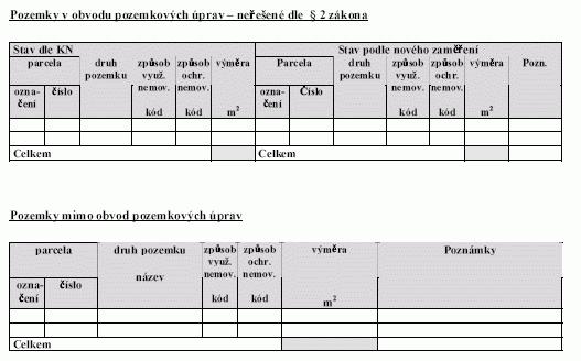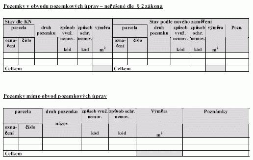 10. Tabulka „Pozemky mimo obvod pozemkových úprav" se zařazuje podle potřeby.