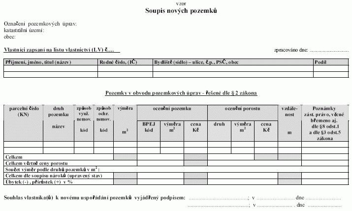 Vysvětlivky ke vzoru soupisu nároků a soupisu nových pozemků
