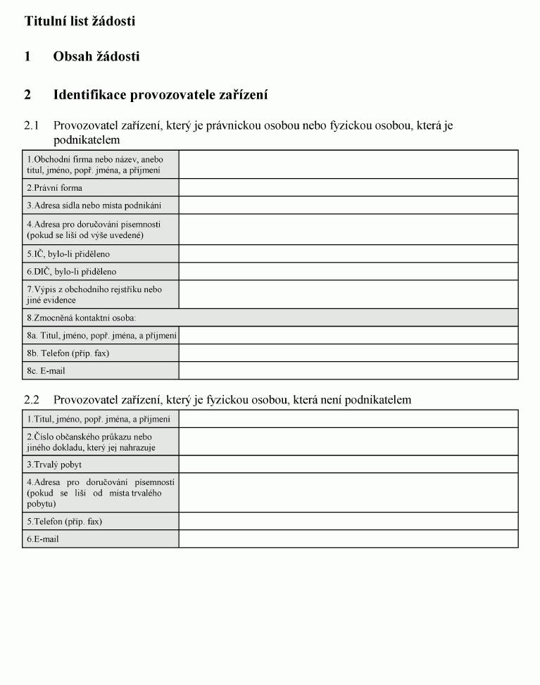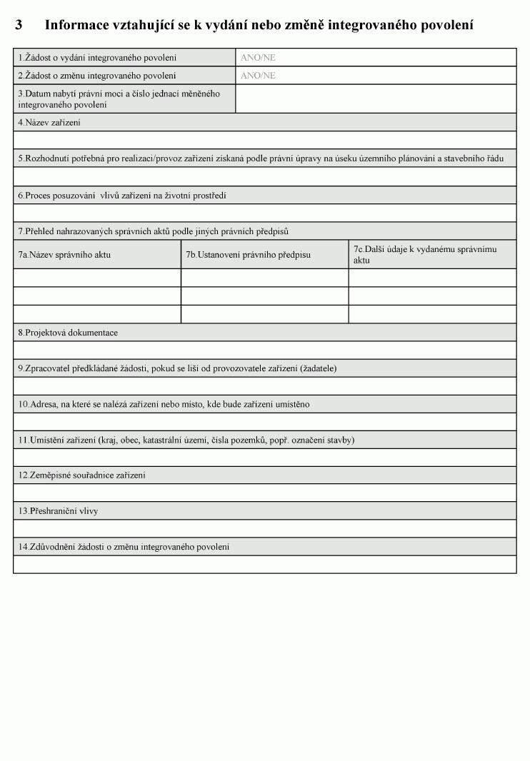 integrovaného povolení provozovatel vyplní žádost v rozsahu