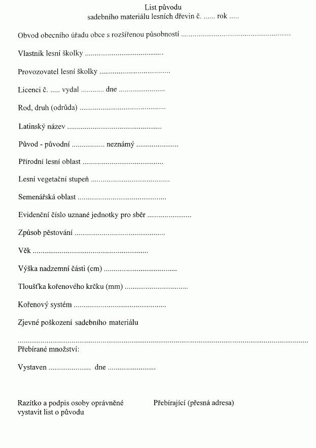 List o původu sadebního materiálu lesních dřevin