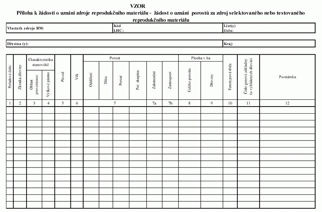 Příloha k žádosti o uznání zdroje reprodukčního materiálu - žádost o uznání