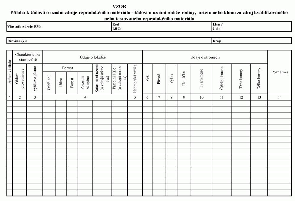 Příloha k žádosti o uznání zdroje reprodukčního materiálu - žádost o uznání
