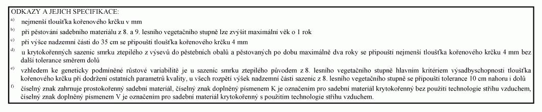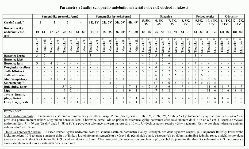 Parametry výsadby schopného sadebního materiálu obvyklé obchodní jakosti