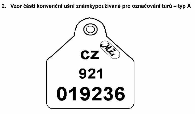 2. Vzor části konvenční ušní známkypoužívané pro označování turů - typ A