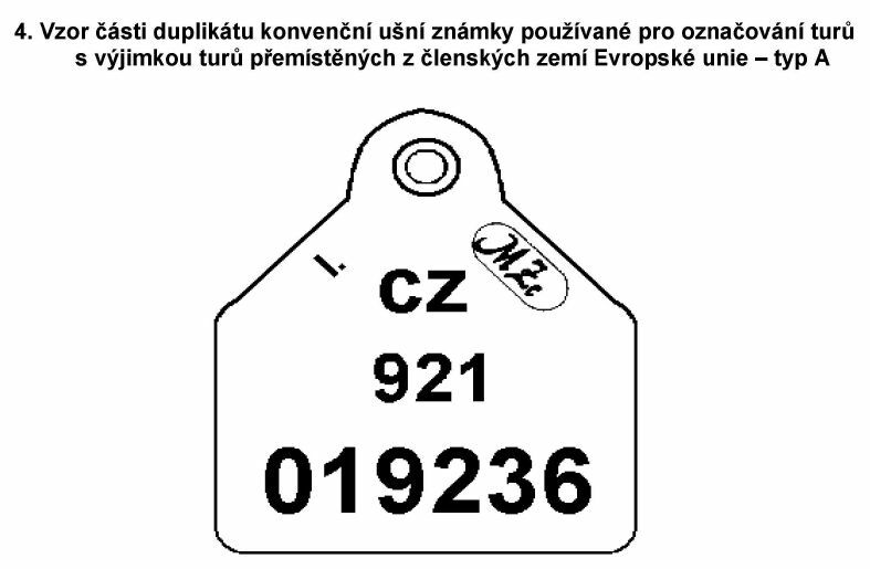4. Vzor části duplikátu konvenční ušní známky používané pro označování turů