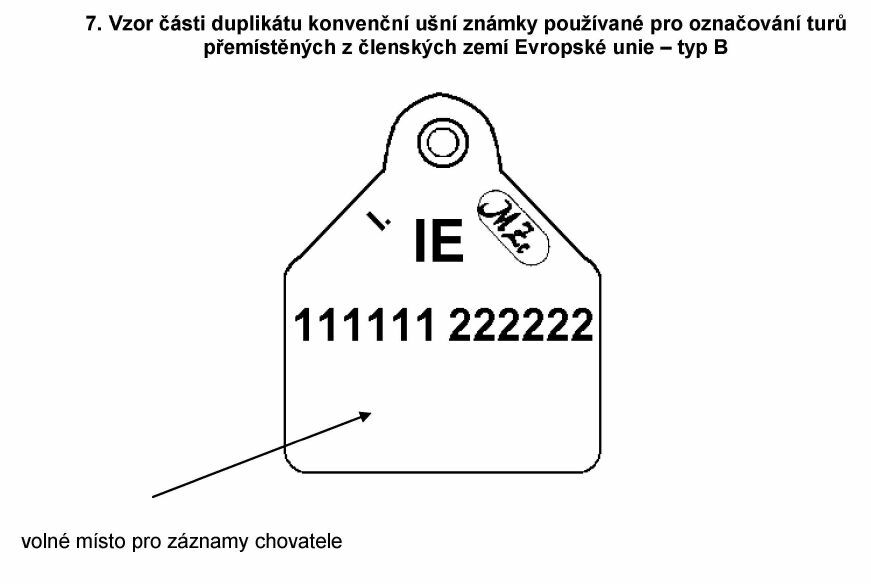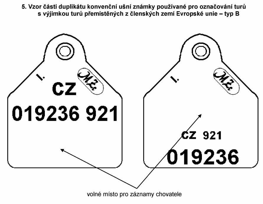 5. Vzor části duplikátu konvenční ušní známky používané pro označování turů