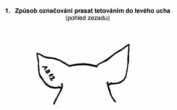 1. Způsob označování prasat tetováním do levého ucha