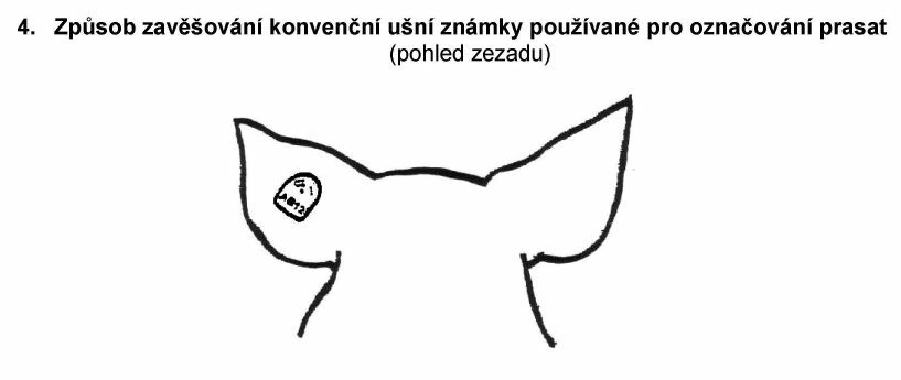 4. Způsob zavěšování konvenční ušní známky používané pro označování prasat