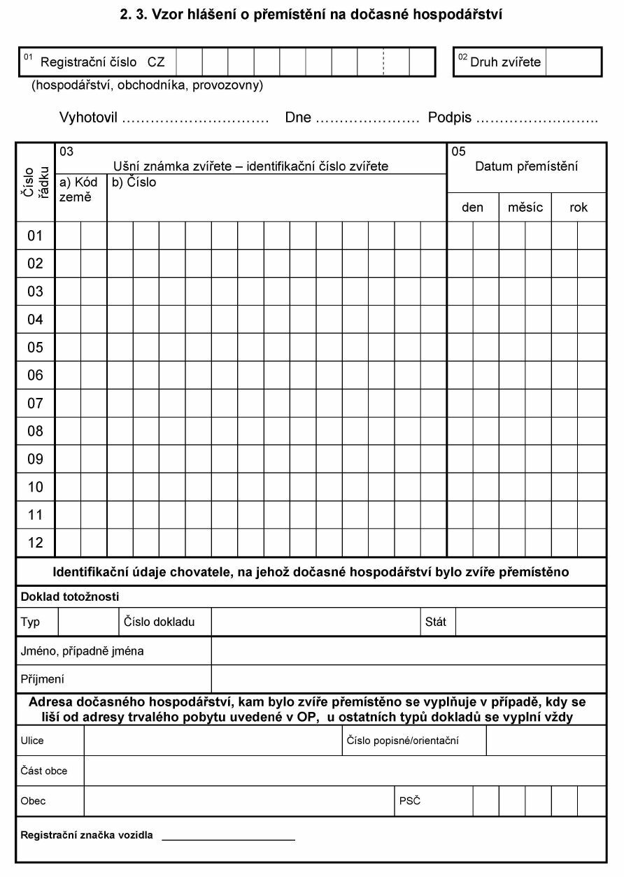 2.3. Vzor hlášení o přemístění na dočasné hospodářství