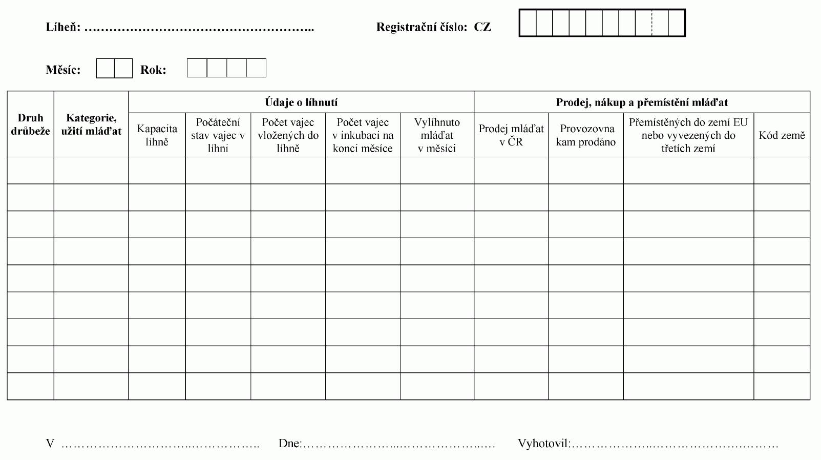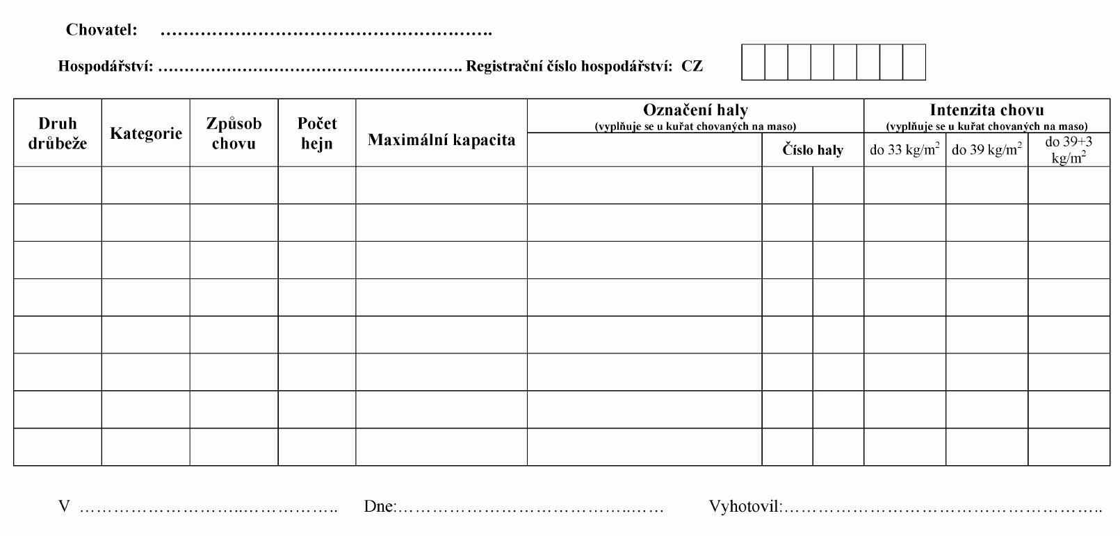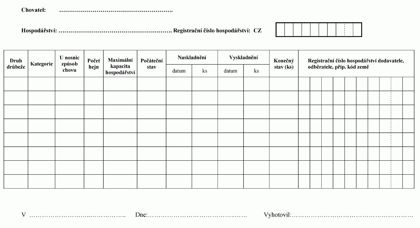 1. Vzor registru drůbeže v hospodářství
