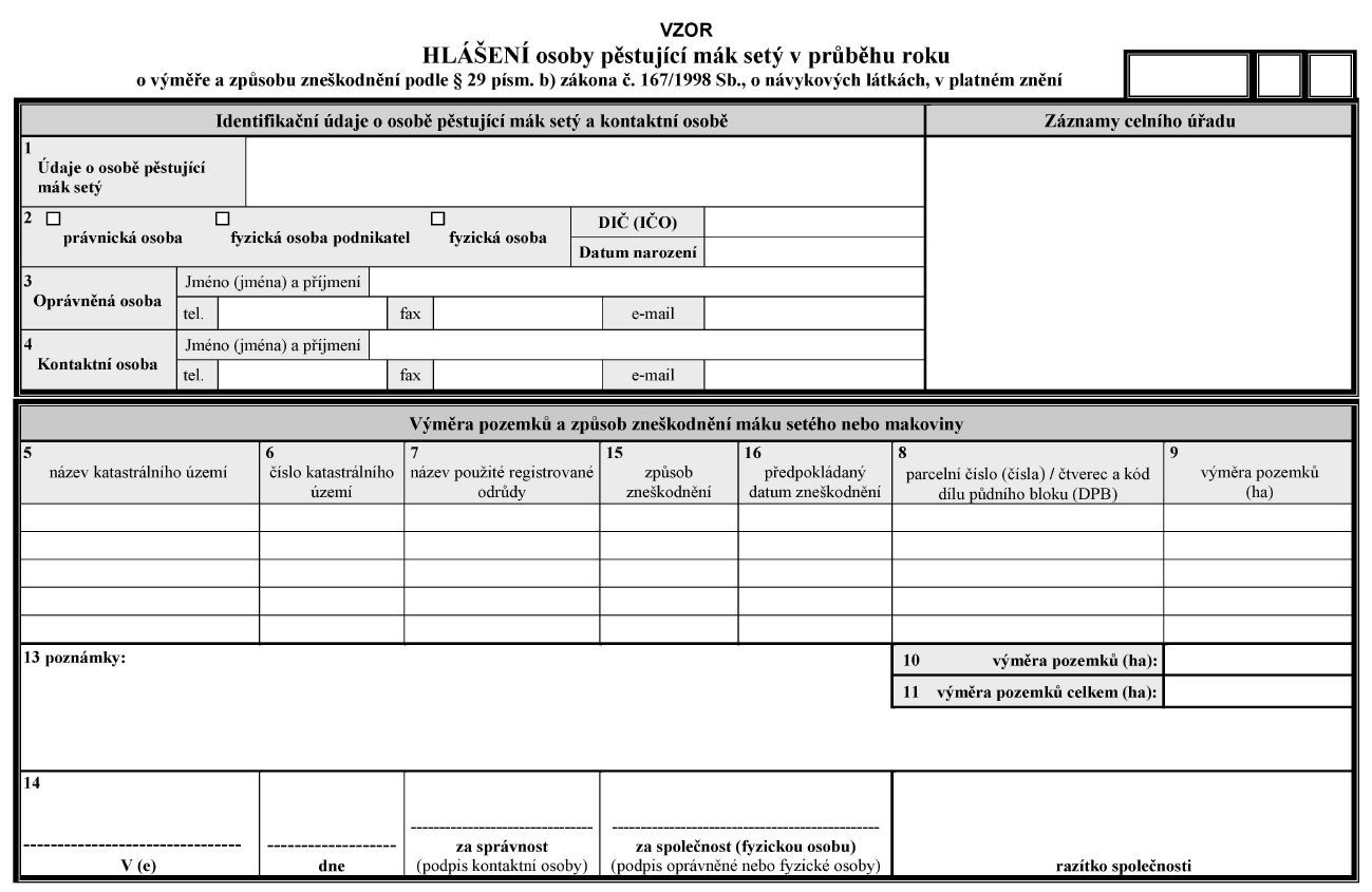 Vyhláška Ministerstva financí a Ministerstva zemědělství č. 151/2005 Sb., kterou se stanoví vzory formulářů pro hlášení osob pěstujících mák setý nebo rostliny technického konopí a způsob vyplňování a nakládání s uvedenými formuláři