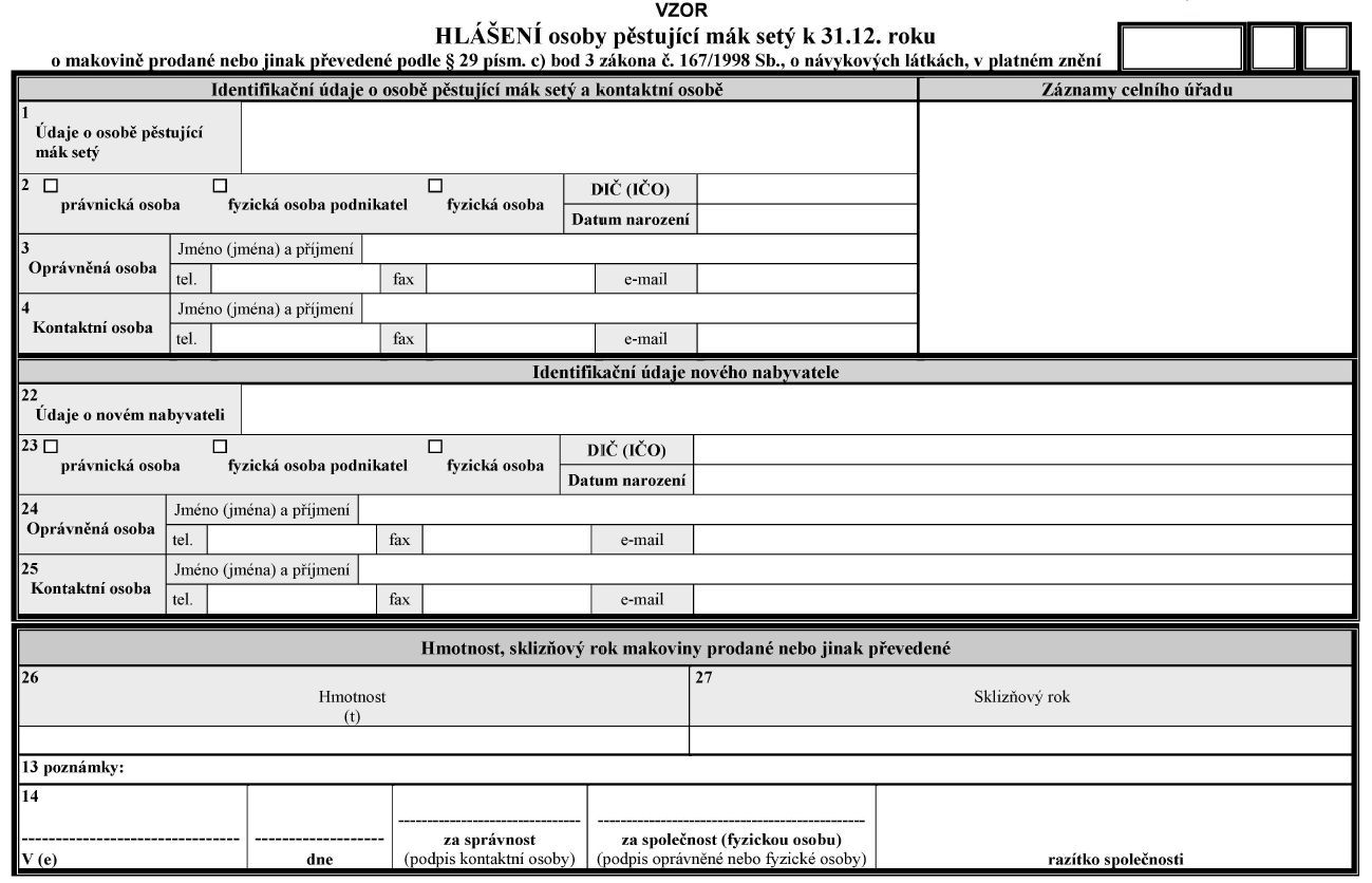 Vyhláška Ministerstva financí a Ministerstva zemědělství č. 151/2005 Sb., kterou se stanoví vzory formulářů pro hlášení osob pěstujících mák setý nebo rostliny technického konopí a způsob vyplňování a nakládání s uvedenými formuláři