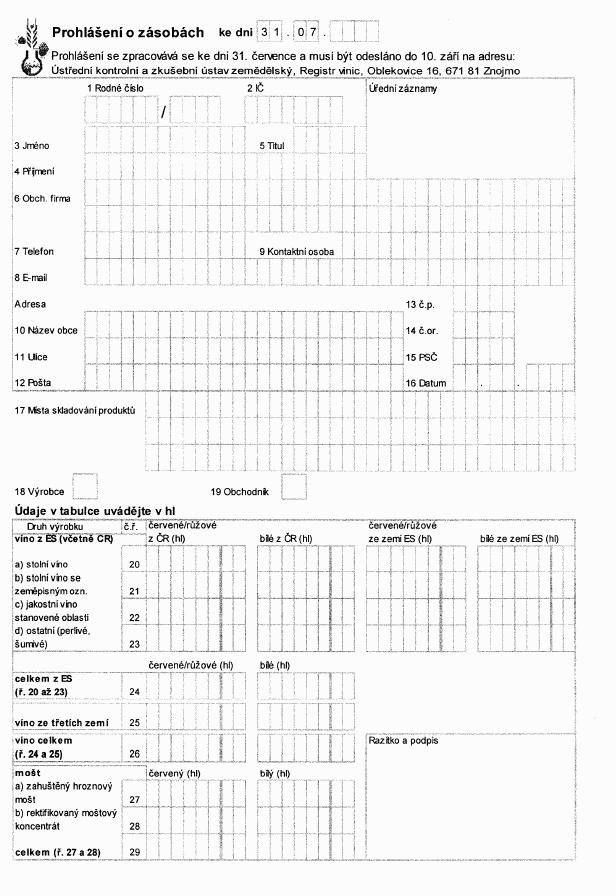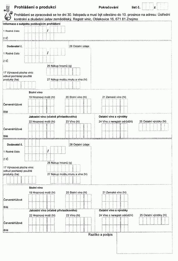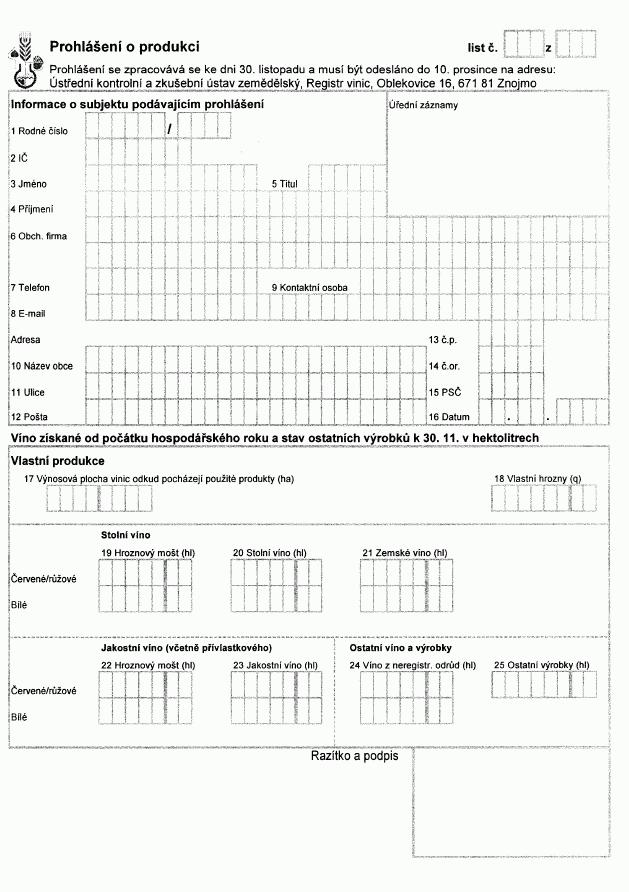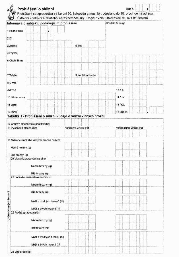 zpracovaných vinných hroznů-" (příloha č. 23 k vyhlášce).