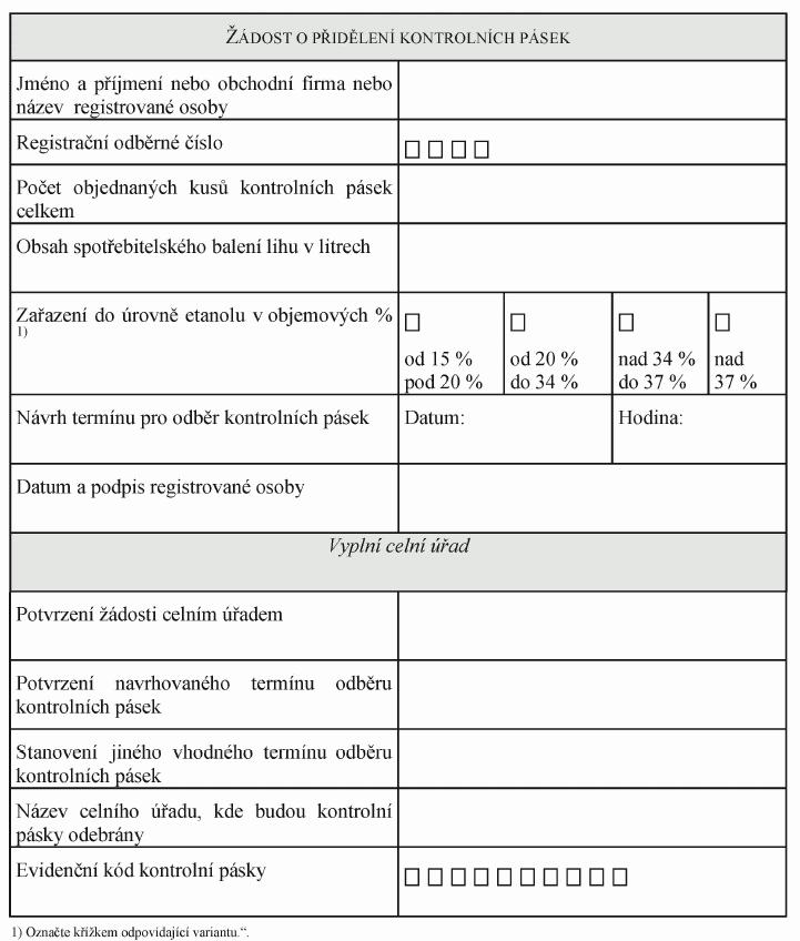 Vzor tiskopisu žádosti o přidělení kontrolních pásek