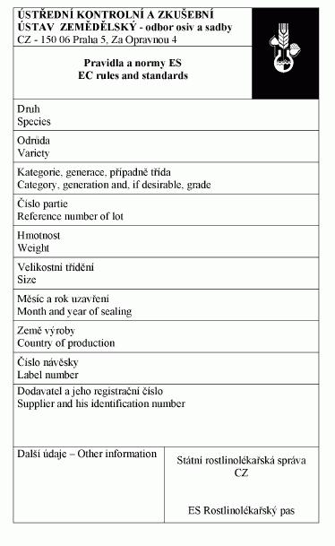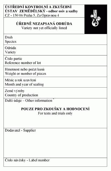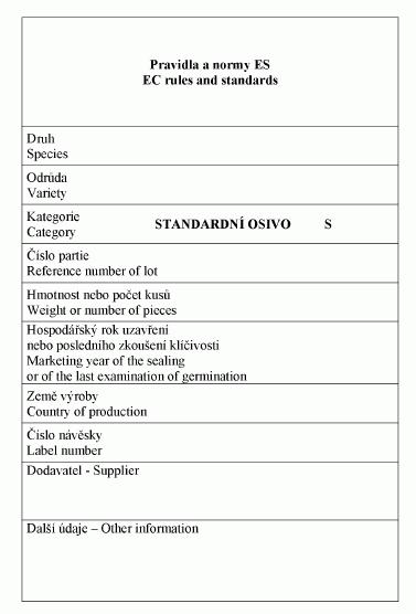 c) zvláštní návěska pro osivo uváděné do oběhu podle § 8