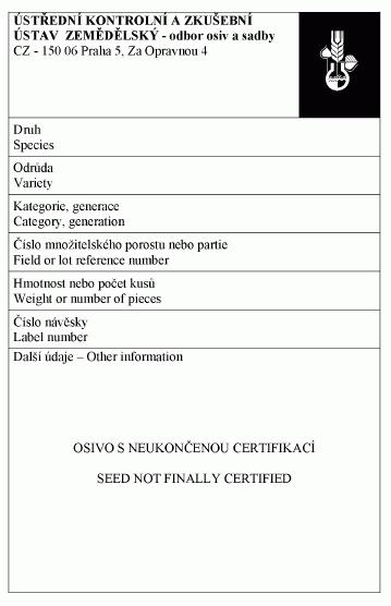 Pozn.: Pro osivo v kategorii šlechtitelský rozmnožovací