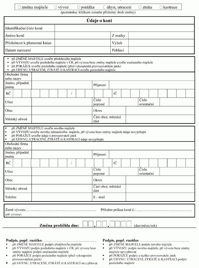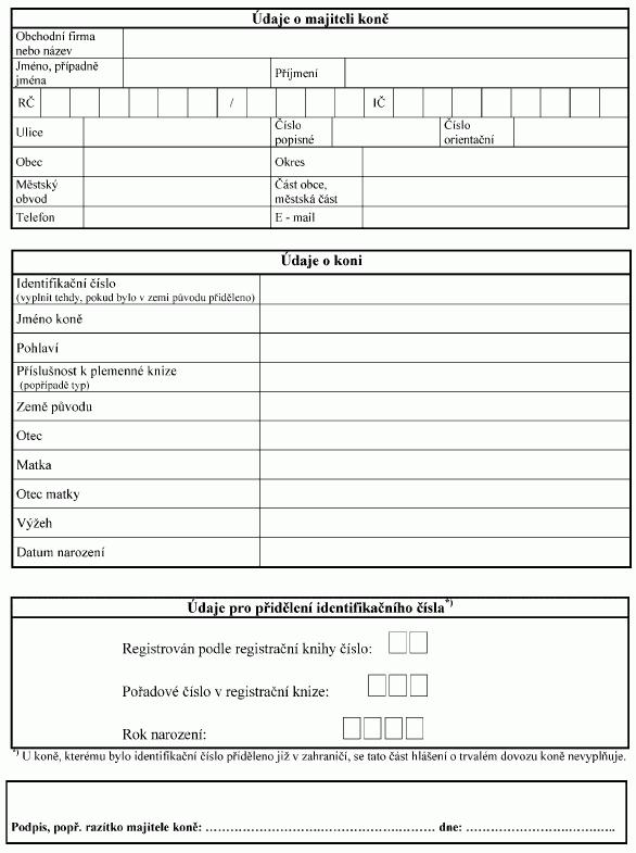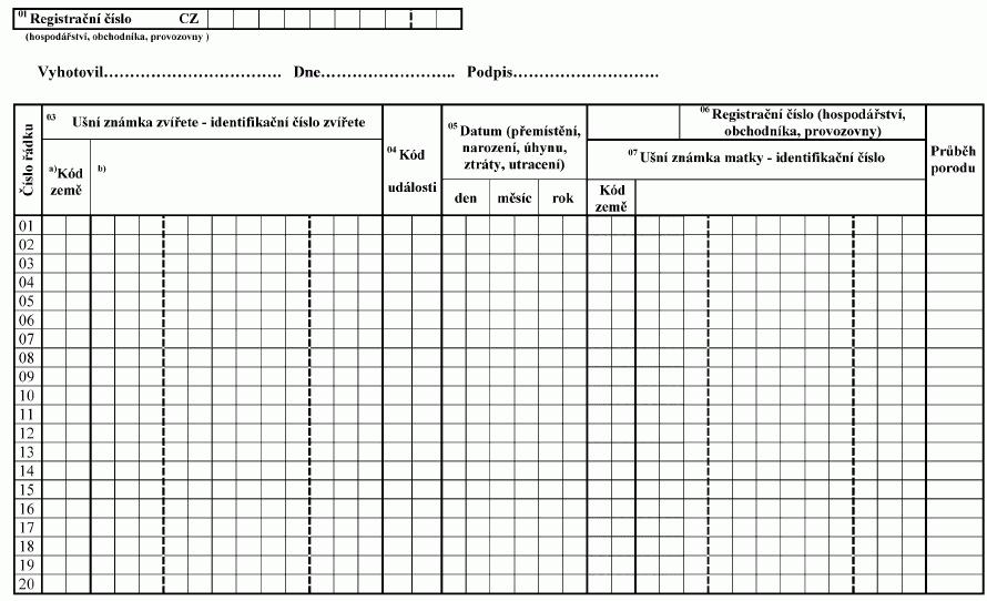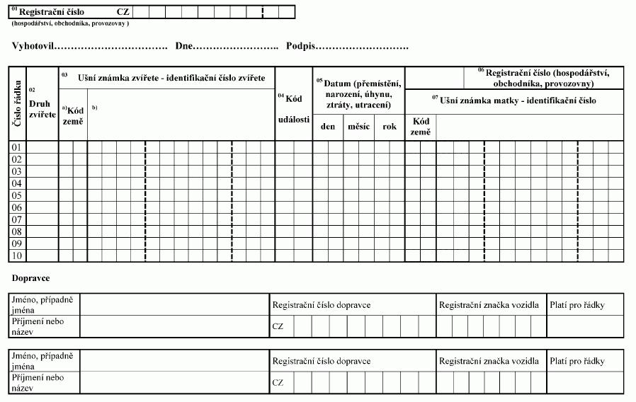 Poznámka: Identifikační číslo zvířete uvedené na ušní známce se uvádí