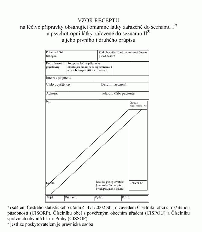 VZOR RECEPTU na léčivé přípravky obsahující omamné látky zařazené do seznamu