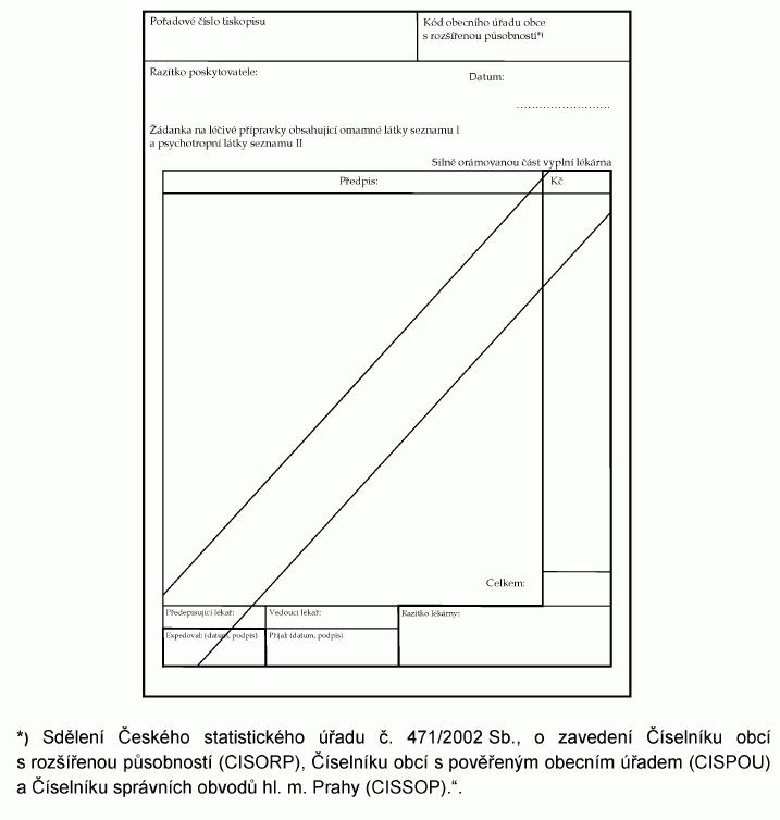 Vzor žádanky na léčivé přípravky obsahující omamné látky seznamu I a psychotropní