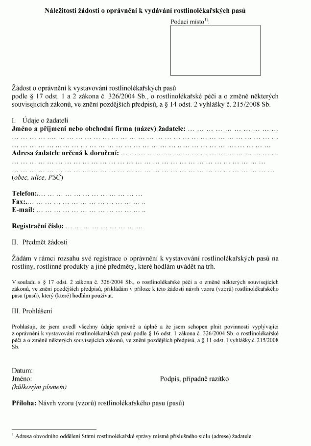 Náležitosti žádosti o oprávnění k vydávání rostlinolékařských pasů