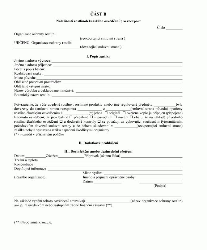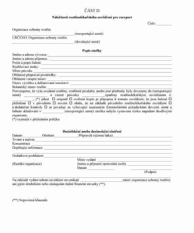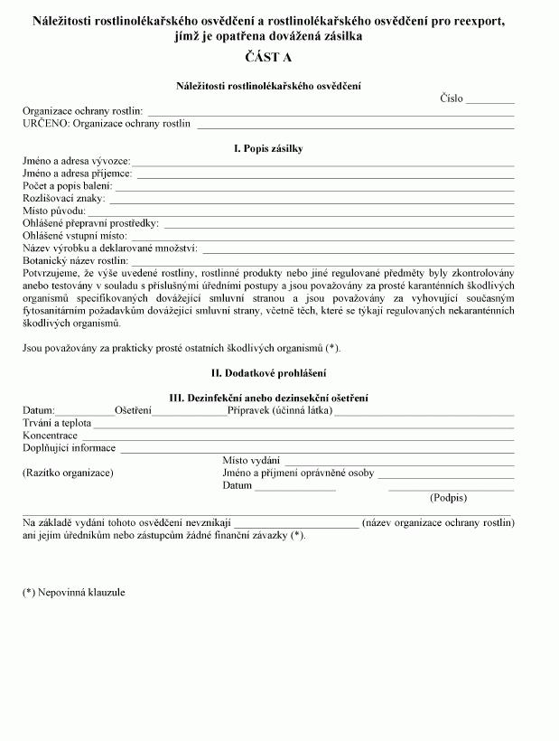 Právní předpisyNáležitosti rostlinolékařského osvědčení a rostlinolékařského osvědčení pro reexport, jímž je opatřena dovážená zásilka