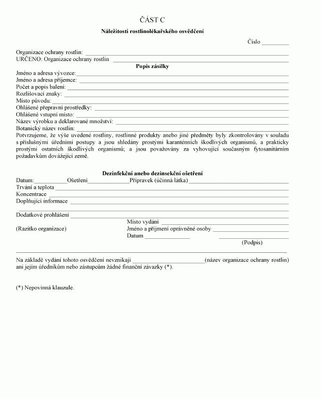 Náležitosti rostlinolékařského osvědčení a rostlinolékařského osvědčení pro