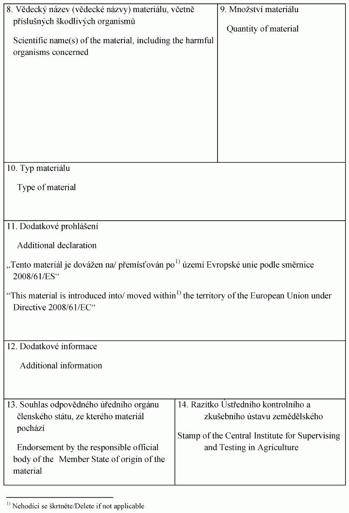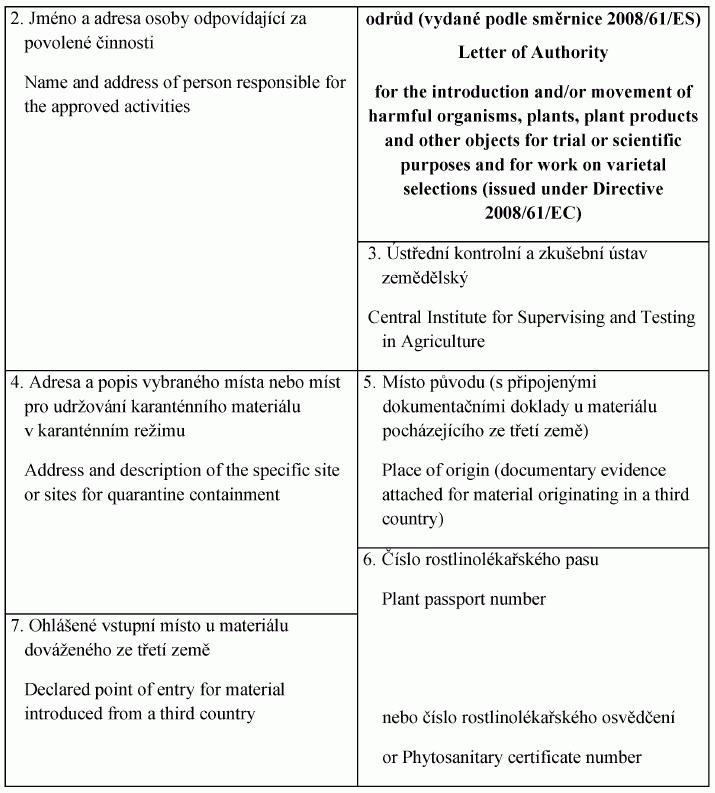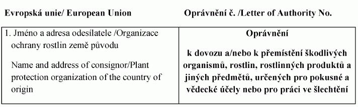 Formulář oprávnění k dovozu ze třetích zemí anebo k přemístění z členských států Evropské unie škodlivých organismů, rostlin,
