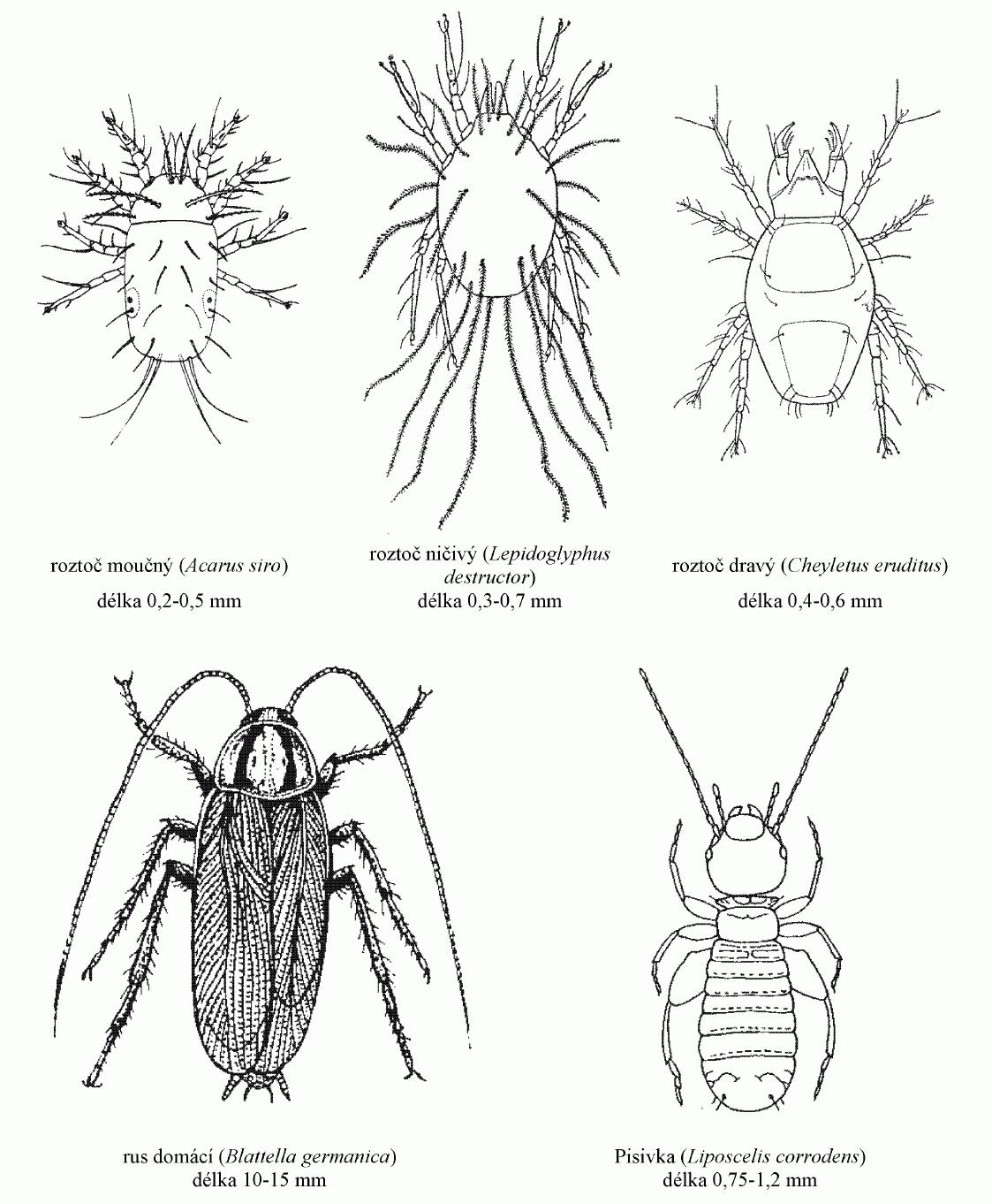2-3 mm),- kožojed obecný (