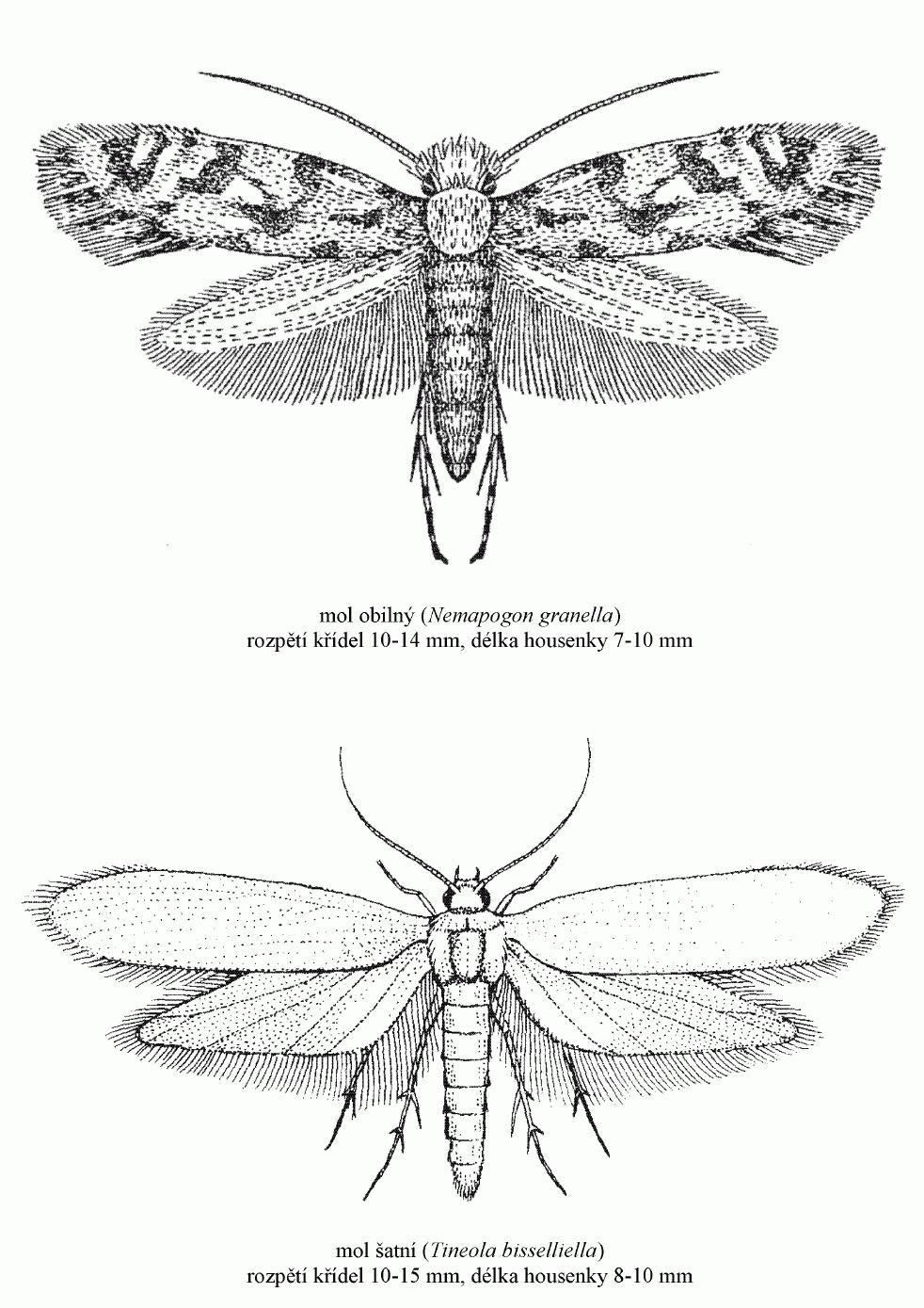 délka housenky 7-10 mm),- mol šatní (