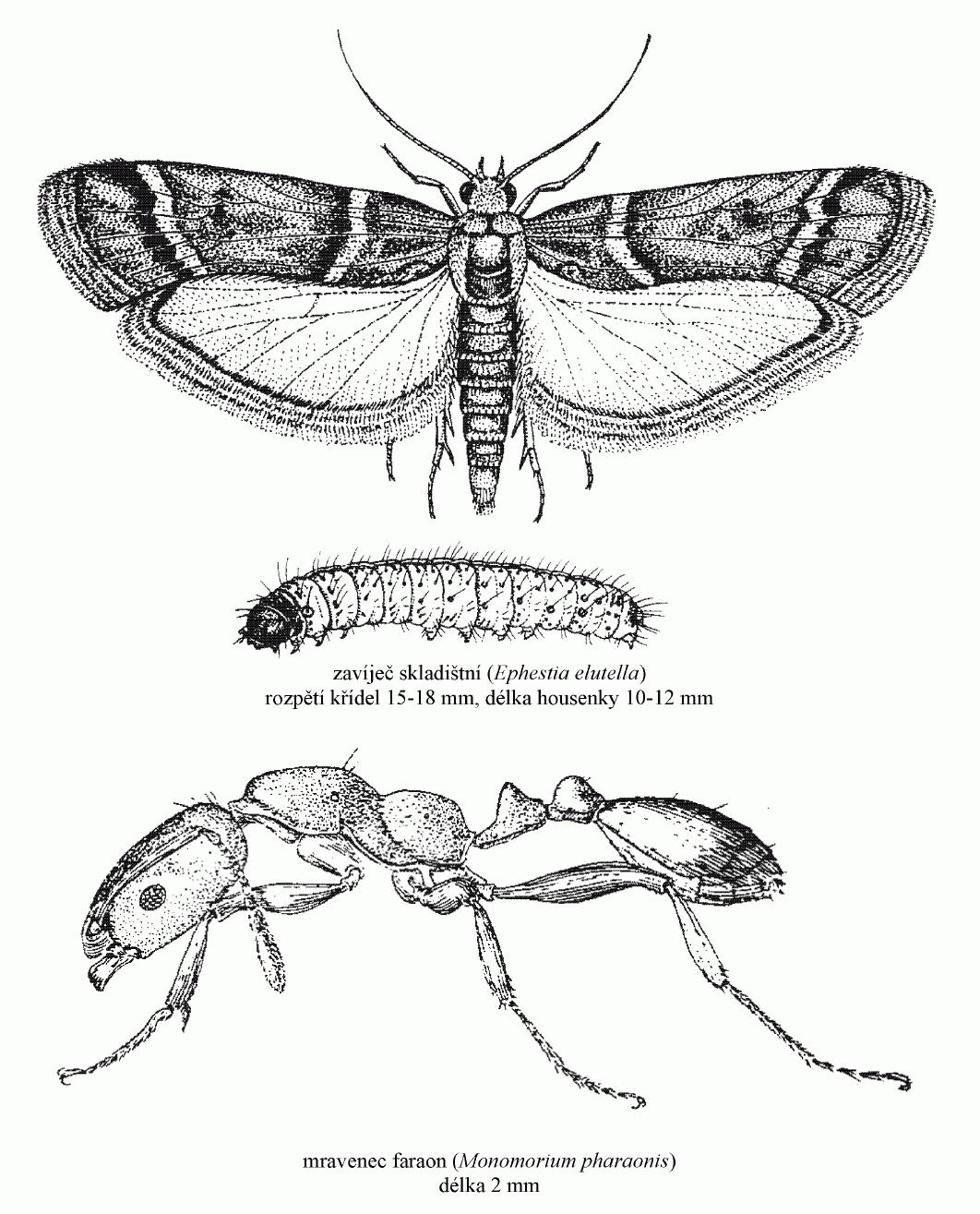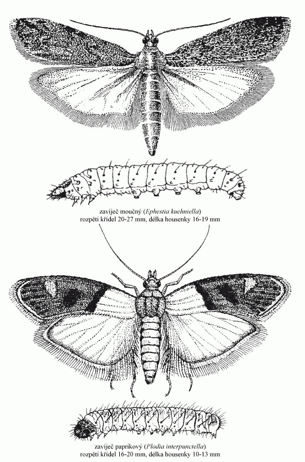 délka housenky 8-10 mm),- zavíječ moučný (
