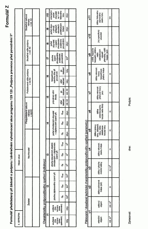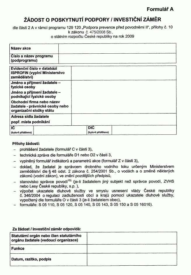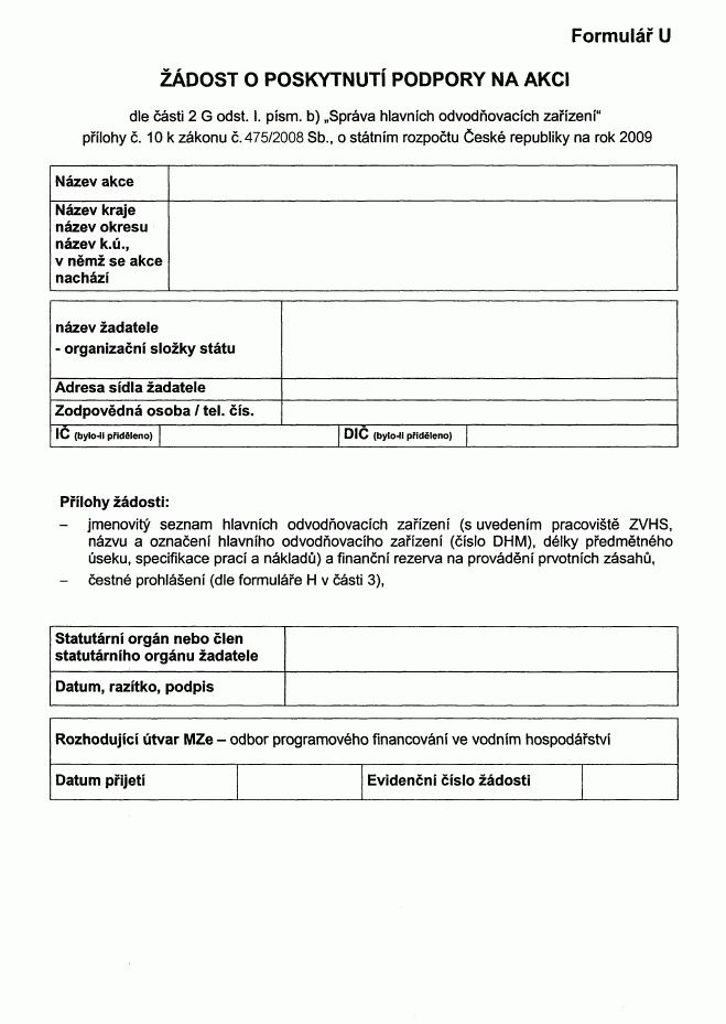 - žádost (formulář U v části 3), jejíž součástí jsou přílohy: