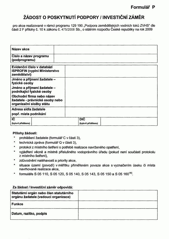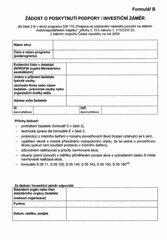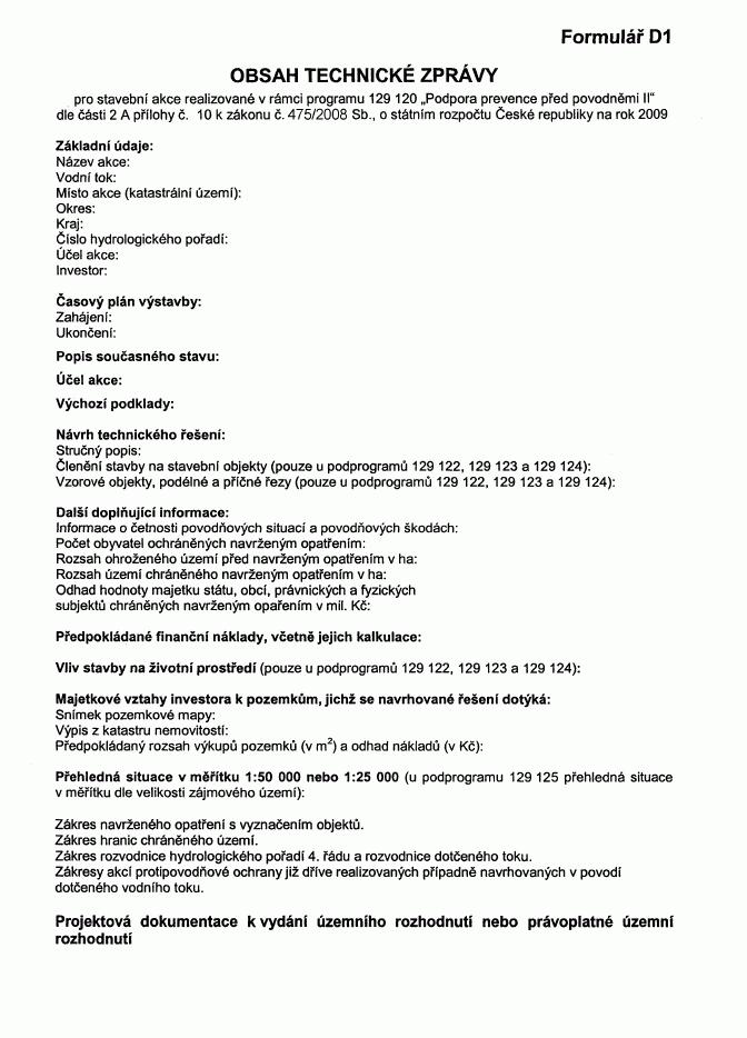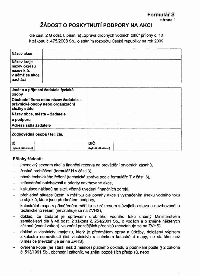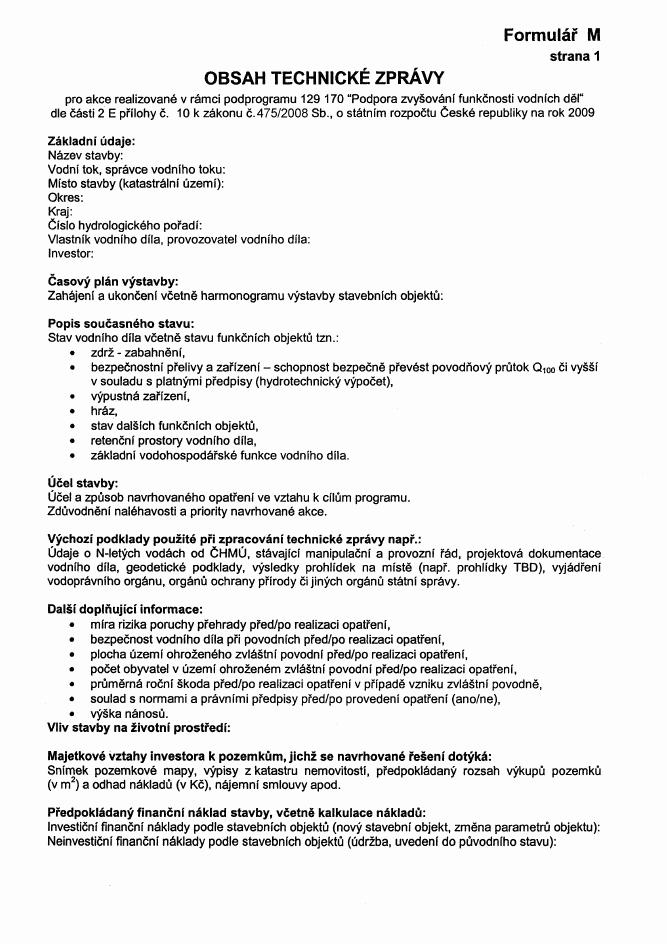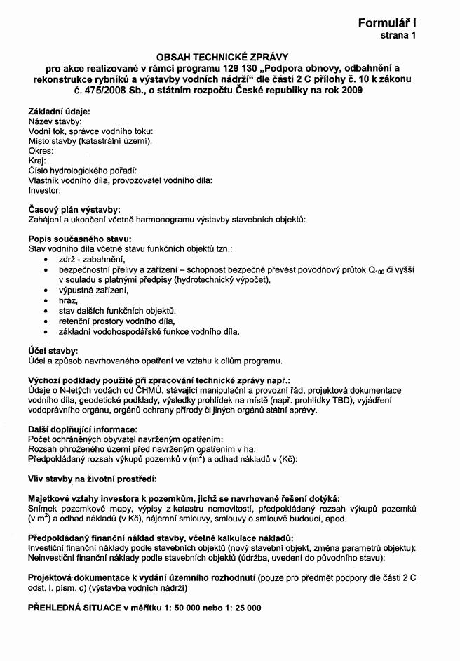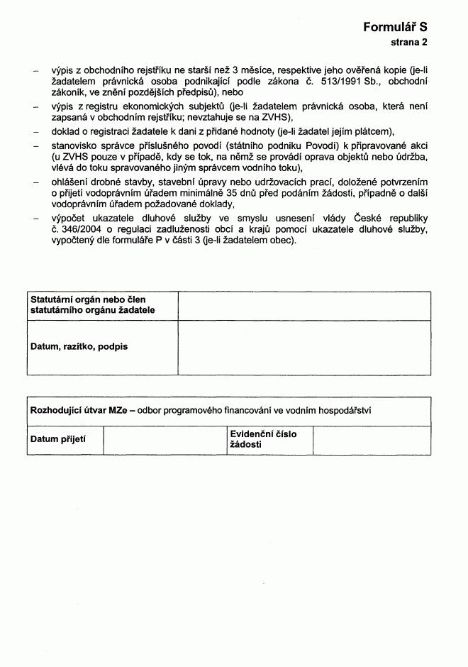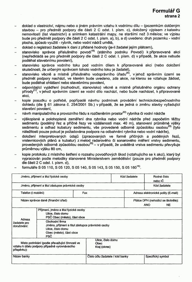 - doklad, že žadatel je správcem drobného vodního toku určený Ministerstvem
