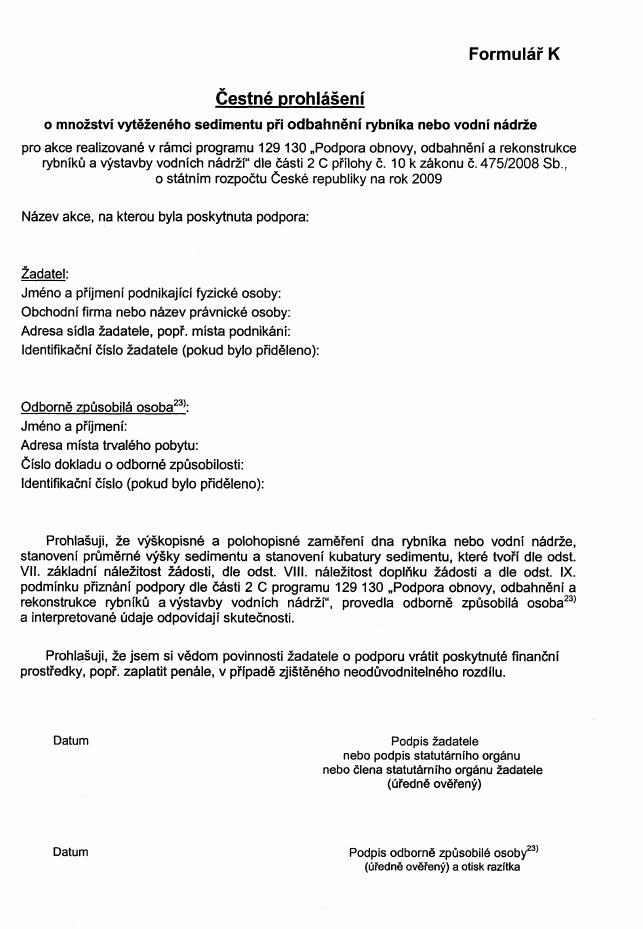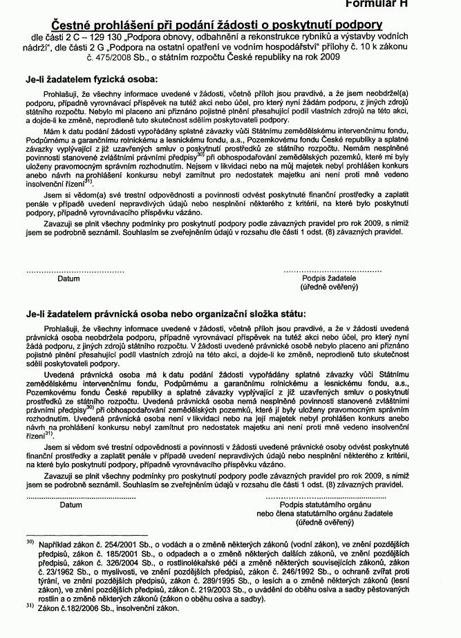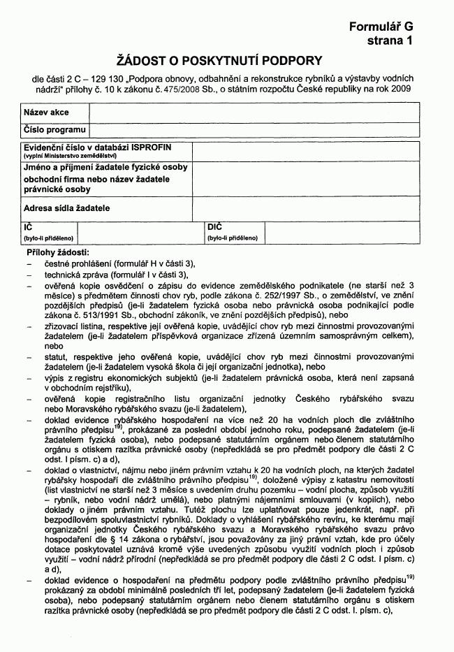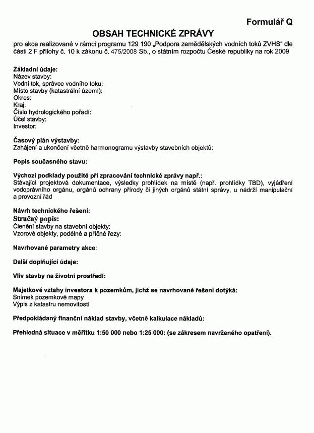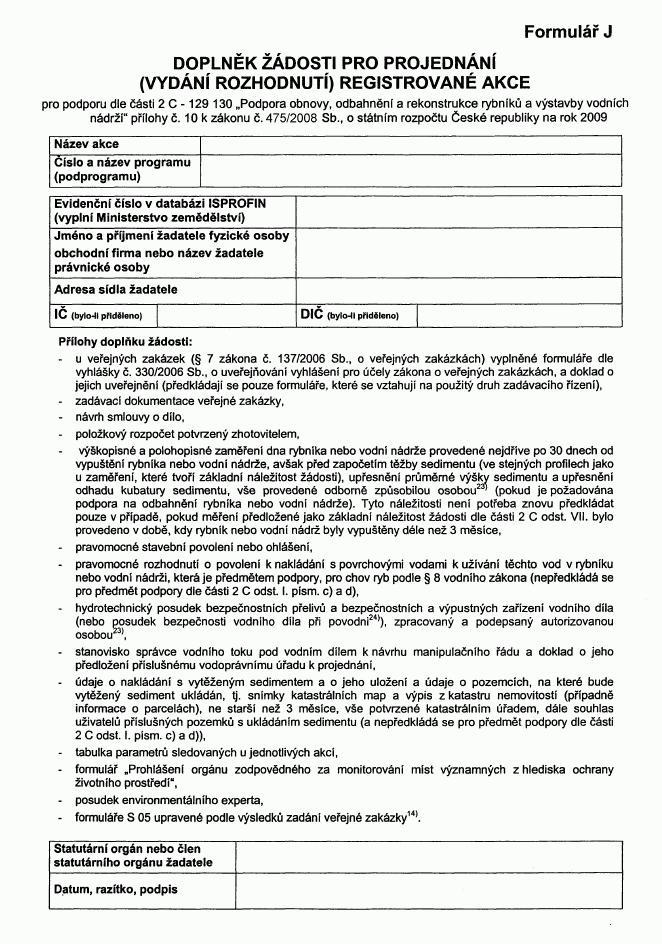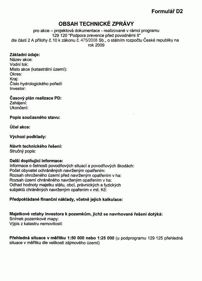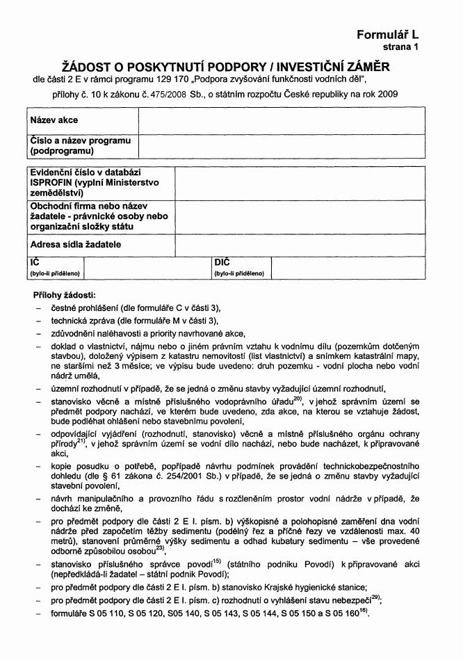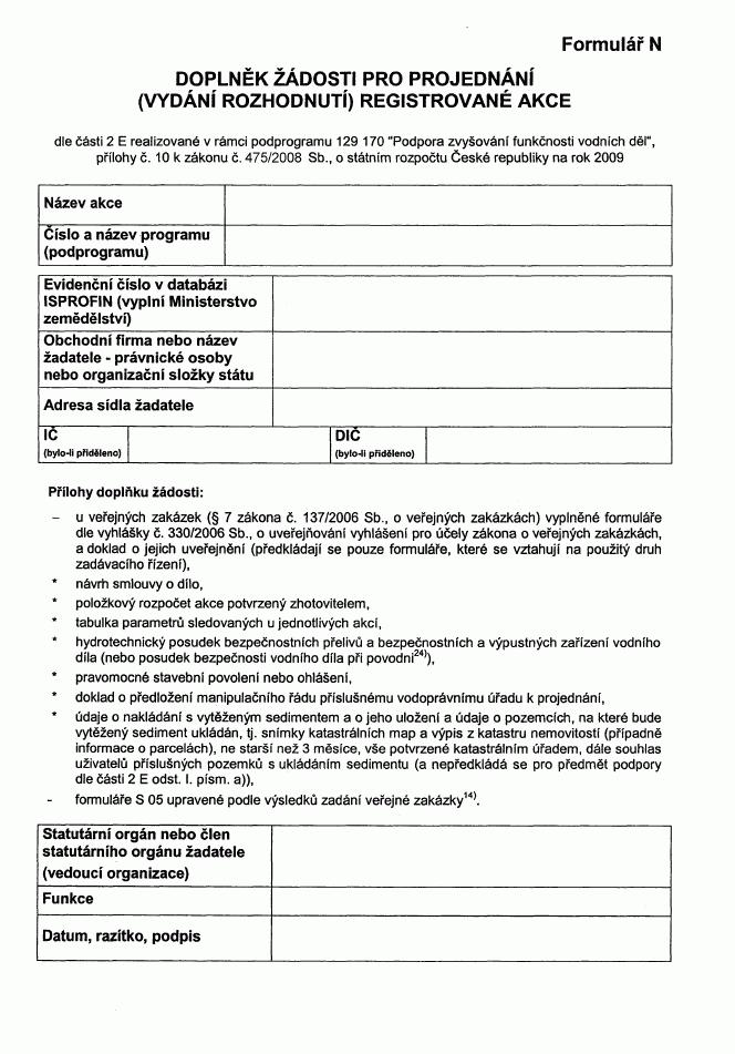 - doklad, že žadatel je správcem drobného vodního toku určený Ministerstvem