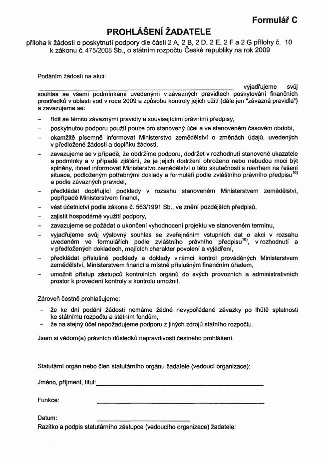 Podpora je určena na dofinancování zahájených akcí, nové žádosti v roce 2009 nebudou