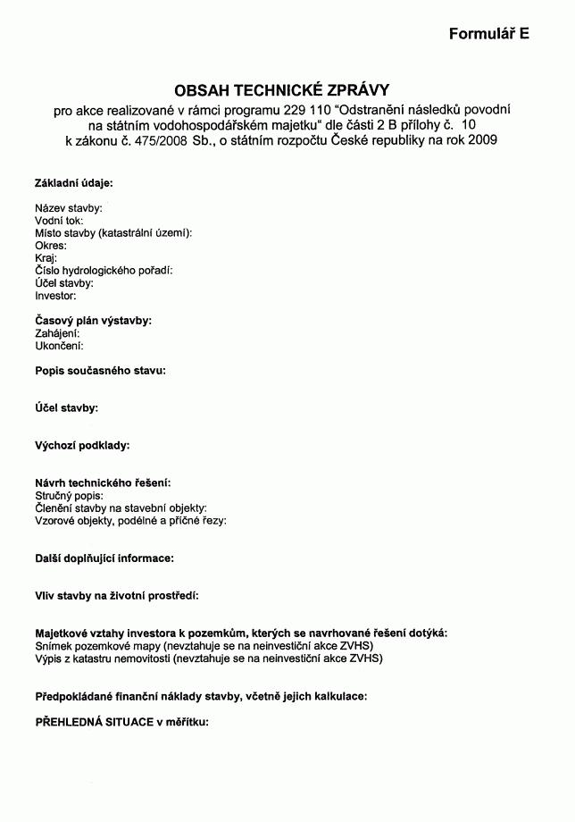 a navrhovaného technického řešení (nevztahuje se na ZVHS),