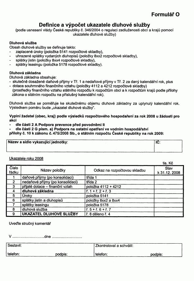 č. 346/2004 o regulaci zadluženosti obcí a krajů pomocí ukazatele dluhové služby,