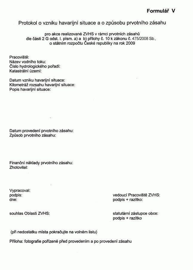 Protokolu o vzniku havarijní situace a způsobu prvotního zásahu (formulář V v části