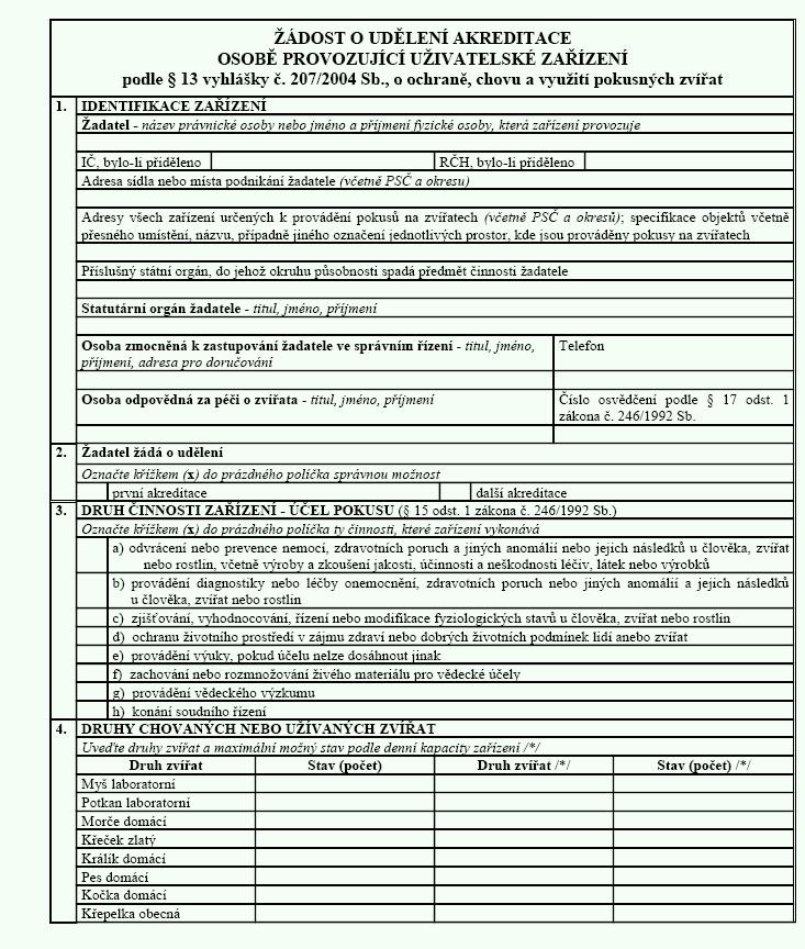 chovu, využití a přepravy pokusných zvířat.