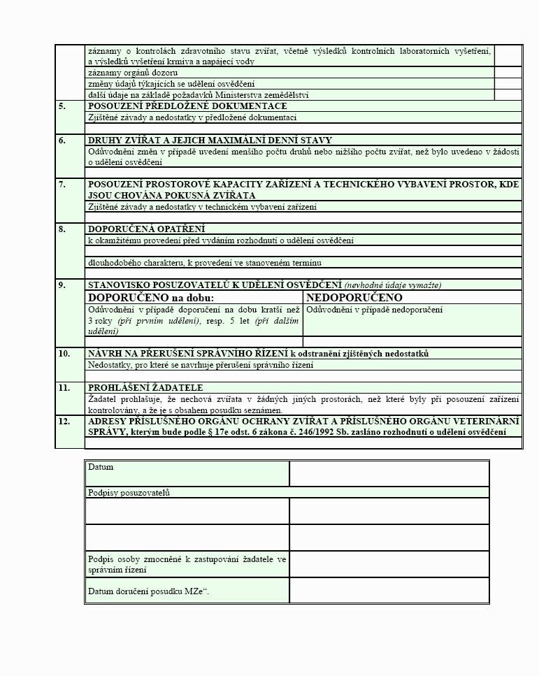„f) dokumentaci použitých zvířat ve vztahu k příslušným